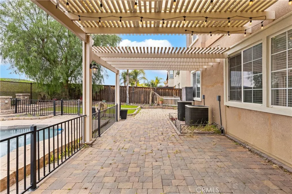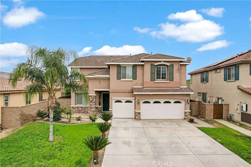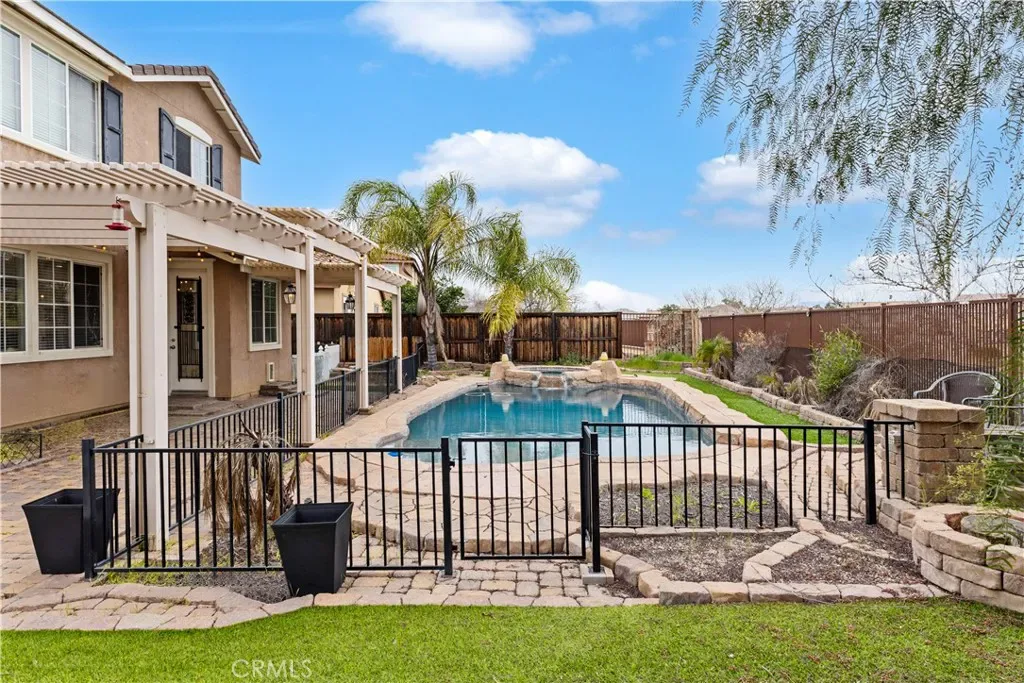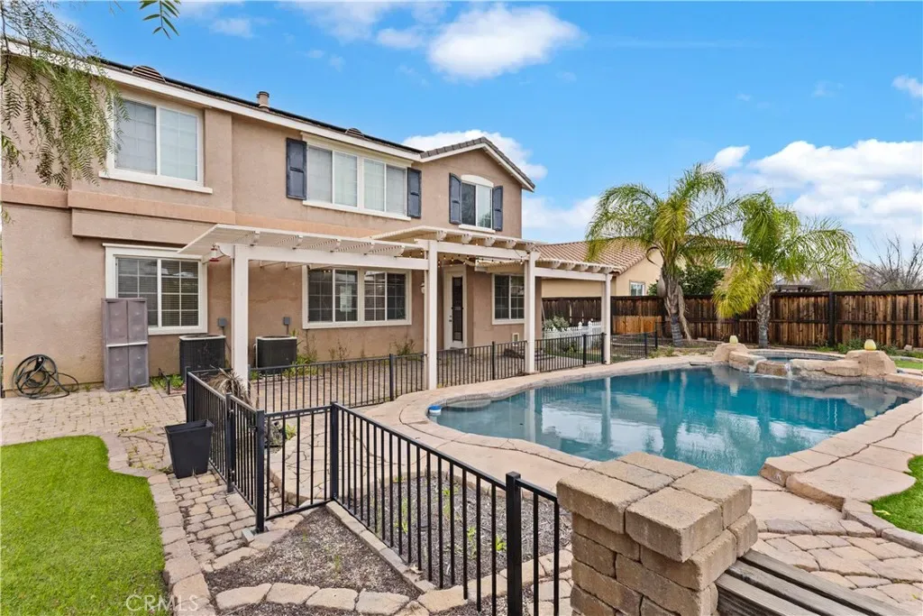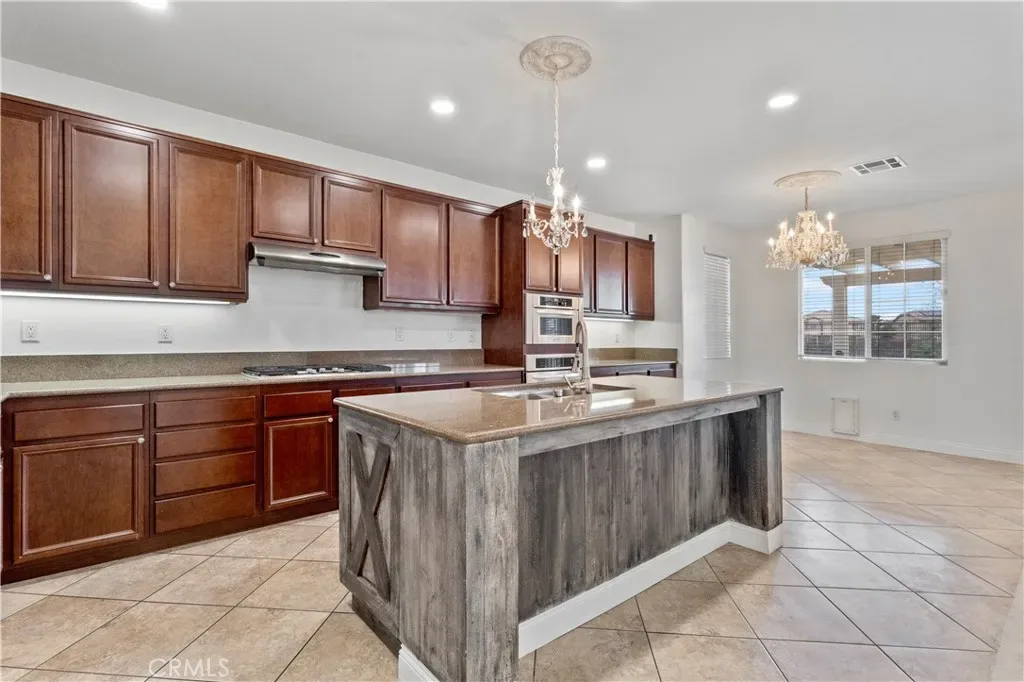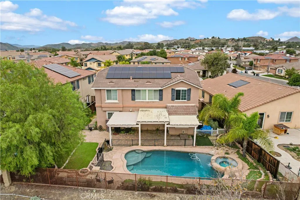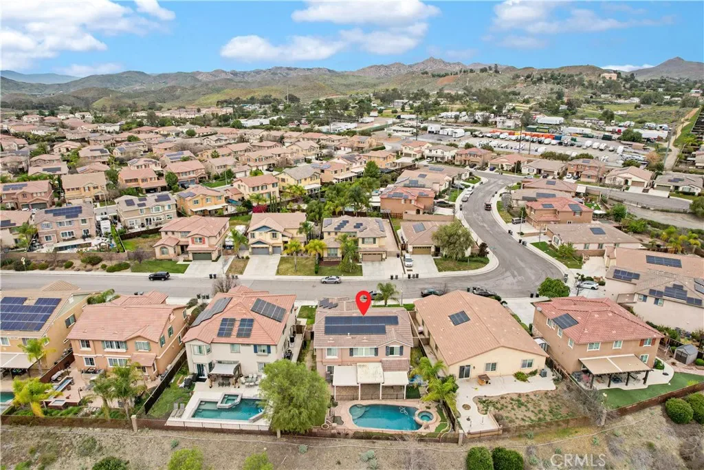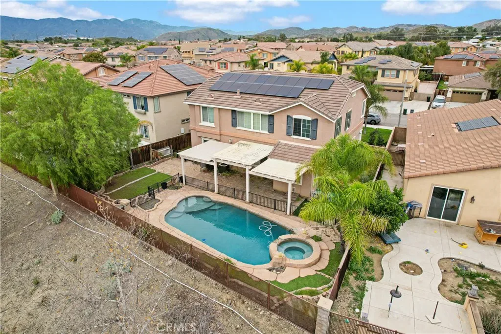 Stunning pool home located in the highly desirable Rosetta Canyon community, offering 4 bedrooms plus a den and 3 full bathrooms. Ideally situated just minutes from shopping, dining, Lake Elsinore, and the 15 Freeway. Upon entry, you’re welcomed by a formal dining area with tile flooring that flows into a spacious open-concept layout, perfect for both everyday living and entertaining. The kitchen features tile countertops, abundant cabinetry with under-cabinet lighting, recessed lighting, a large walk-in pantry with a custom door, and a custom island with rustic accents. The living room showcases soaring ceilings, laminate flooring, and a cozy fireplace.