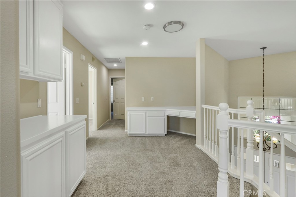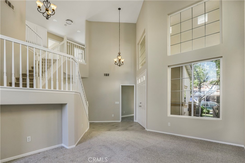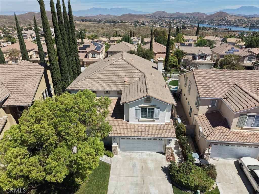 Incredible 4 bedroom 3 bathroom 2733 square foot two story home on a large 7841 square foot lot featuring a 2 car garage, located in the Tuscany Hills community of Lake Elsinore. The home has been rehabbed with new carpet, flooring and fixtures throughout. The home opens with a double door formal entry. Upon stepping inside, you will immediately notice the high ceilings and decorative windows, which give the home a beautiful touch and provide an abundance of natural lighting. This home features chandeliers and a combination of new luxury vinyl plank flooring and carpet in the living room, kitchen, and dining area. To your right, you will see a bedroom/bonus room with an abundance of windows fills the rooms with natural light, creating a warm and inviting feeling. The kitchen has an open concept with beautiful brown granite countertops, matching white cabinets, a kitchen island, a walk in pantry, and stainless steel appliances to add to the brightness of the kitchen. There is a dining area next to the kitchen, as well as a separate room that can be used as a formal dining area or a game room complete with plumbing hooksups and drain line. The fireplace is located in the living room next to the kitchen, with a door granting access to the backyard, perfect for people who like to host gatherings. Going upstairs, to your left, with a double door entry as well, you will see the spacious master bedroom featuring a balcony with amazing mountain and lake views and primary bathroom that features a walk in shower, a walk in closet with mirror windows, double sink, and a toilet with a private door and a vanity area. The rest of the bedrooms are down the hallway and feature new carpet and windows that bring light into the room, as well as oversized closets with mirror doors. The backyard is stunning, with a covered patio and brickwork throughout, creating a private park feel with sitting areas and easy to maintain vegetation and views of Canyon Lake. HOA amenities are incredible and include several sports courts, including baseball, softball, basketball and pickleball, as well as am olympic size swimming pool and clubhouse.