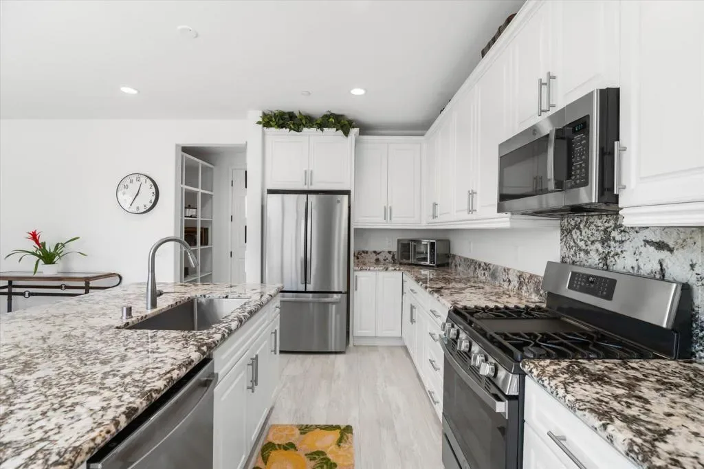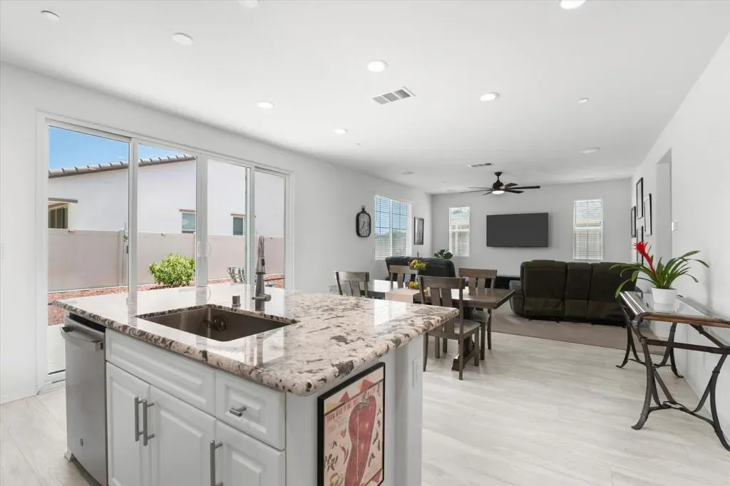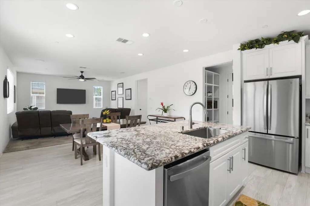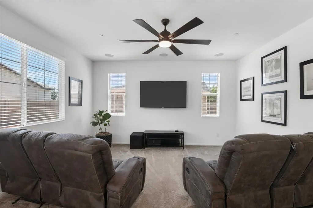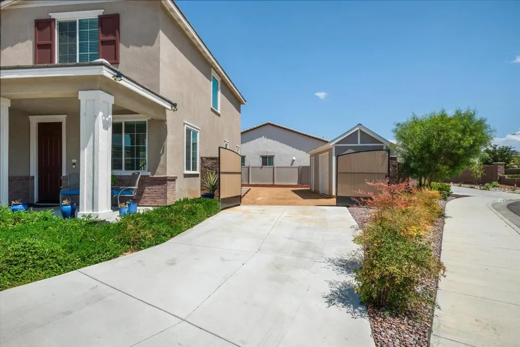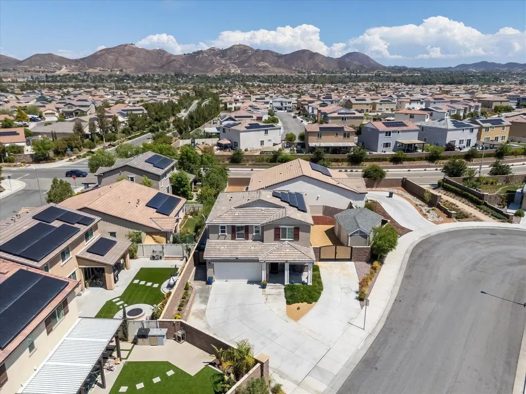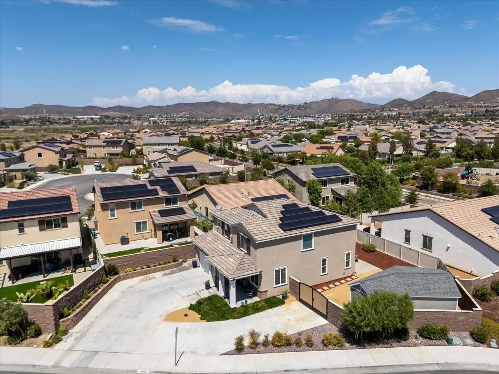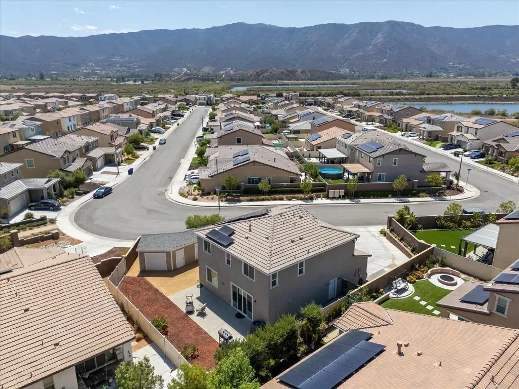Welcome to Your New Home in the Highly Desirable Summerly Community!This beautifully upgraded and move-in-ready two-story single-family home offers everything you’ve been searching for–space, comfort, and incredible views! Nestled in a newly developed neighborhood, this 3-bedroom, 3-bathroom gem features a spacious open layout with a large loft, formal living room, cozy family room, and a 2-car garage.Step into the bright and airy family room, complete with light-catching windows and built-in surround sound–perfect for entertaining or relaxing. The adjacent dining area seamlessly connects to the gourmet kitchen, creating an ideal open-concept living space. The kitchen boasts a large center island with designer granite countertops, soft-close white cabinetry, stainless steel appliances, recessed lighting, and a generous walk-in pantry.Upstairs, you’ll find a spacious loft, two secondary bedrooms, a full bathroom, and a luxurious primary suite. The primary suite features a large bedroom, walk-in shower, dual vanities, and an expansive walk-in closet.Step outside to a low-maintenance backyard loaded with upgrades–including a recently built 420-sqft storage room with two 7-foot roll-up doors and a separate man door. Whether you need space for work equipment, golf carts, dirt bikes, or quads, this area has you covered. The property also includes 12-foot RV gates, a permitted RV/boat driveway and parking area–eliminating the need for off-site storage!Additional highlights include:Low-lease solar panelsTankless water heaterFire sprinkler systemSeven added windows for enhanced natural lightConveniently located near shopping, golf course, parks, walking trails, lake activities, Storm Stadium, and the 15 freeway–this home truly has it all.Don’t miss your chance–this stunning home is a must-see!
