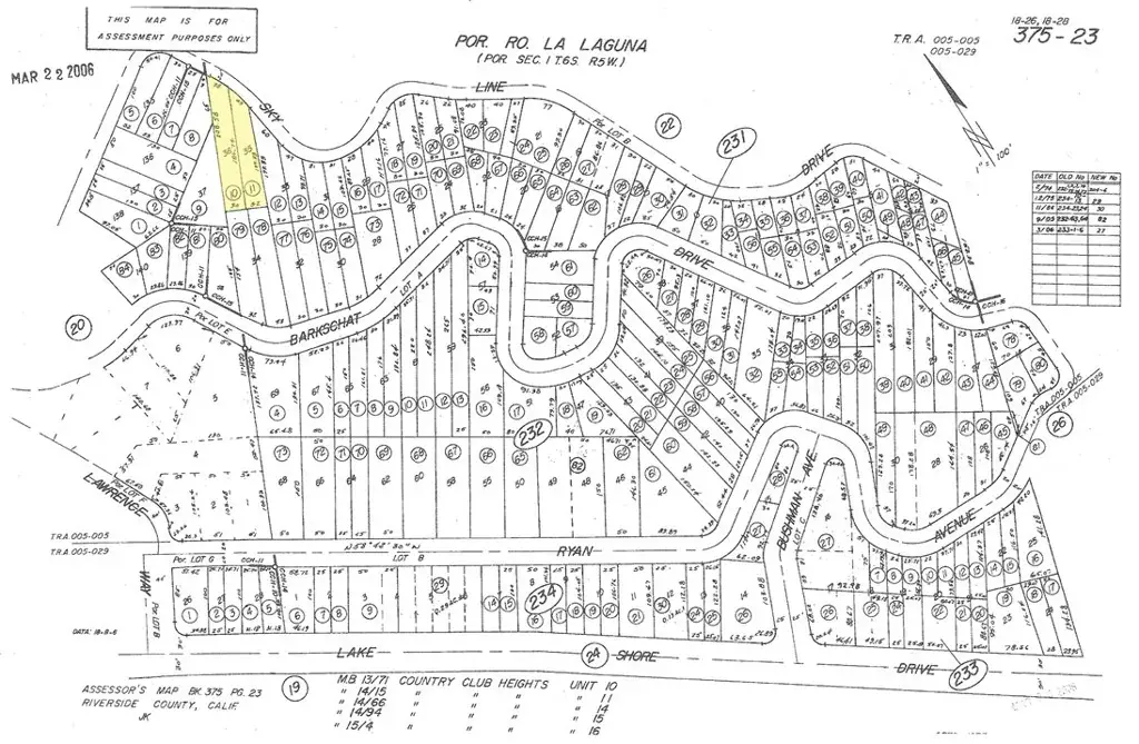Back on market pending escrow cancellation, Land with Lake Views and close to the lake in the community of Country Club Heights! One Lot consisting of 2 APNs (375-231-010, 375-231-011) for a total of 10,890 Sq.Ft. Buyer to perform their due diligence regarding zoning, usage, utility access, title, etc.
