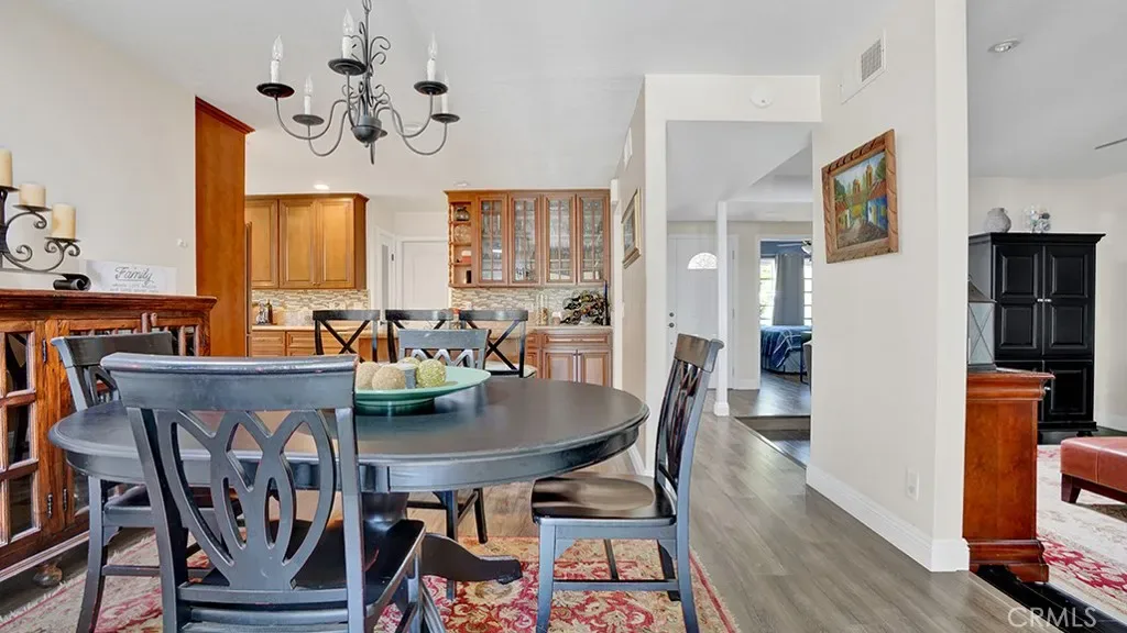 ONE OF THE LARGEST SINGLE-STORY HOMES IN THE AREA — A beautifully maintained and thoughtfully expanded 4-bedroom, 3-bathroom residence with exceptional flexible living spaces. The completely remodeled kitchen features elegant granite countertops, custom cabinetry, stainless steel appliances, generous storage space for all your culinary needs, and a large island perfect for casual meals, food prep, and gatherings. Adjacent to the kitchen, the formal living room and dining room offer classic appeal with a cozy fireplace — ideal for relaxing and hosting guests. Two sets of double French doors open to the expansive addition, revealing a spacious family room and second dining area with ample natural light and recessed lighting throughout. Both spaces flow effortlessly to the large wrap-around backyard. The primary suite offers a peaceful retreat with generous space and a versatile bonus area that can serve as a home office, nursery, reading nook, or additional sitting room. The three additional bedrooms are all well-sized and comfortable for family members or guests. All bathrooms have been tastefully remodeled, showcasing travertine-tiled showers for a spa-like experience. Outside, the large wrap-around backyard is a true private oasis — complete with lush greenery, an orange tree, manicured landscaping, plenty of space for entertaining, and a charming fire pit ideal for evening gatherings under the stars. The two-car garage has direct access to the kitchen, making grocery unloading quick and convenient. Additional highlights include: rich wood flooring throughout, a newer heater, recessed lighting and ceiling fans, abundant natural light, and multiple sets of double French doors that enhance the indoor-outdoor connection. Enjoy full access to the Lake Forest Beach & Tennis Club, with amenities including tennis courts, an Olympic pool, a swimming lagoon, an indoor jacuzzi, a weight room, a billiards room, and more. This home is conveniently centrally located near shopping centers and everyday amenities. This rare single-story gem combines flexible living spaces and outstanding indoor-outdoor flow – making it the perfect place for everyday comfort and memorable entertaining.