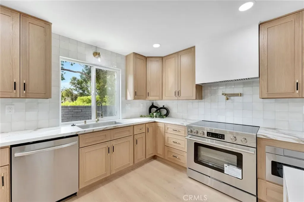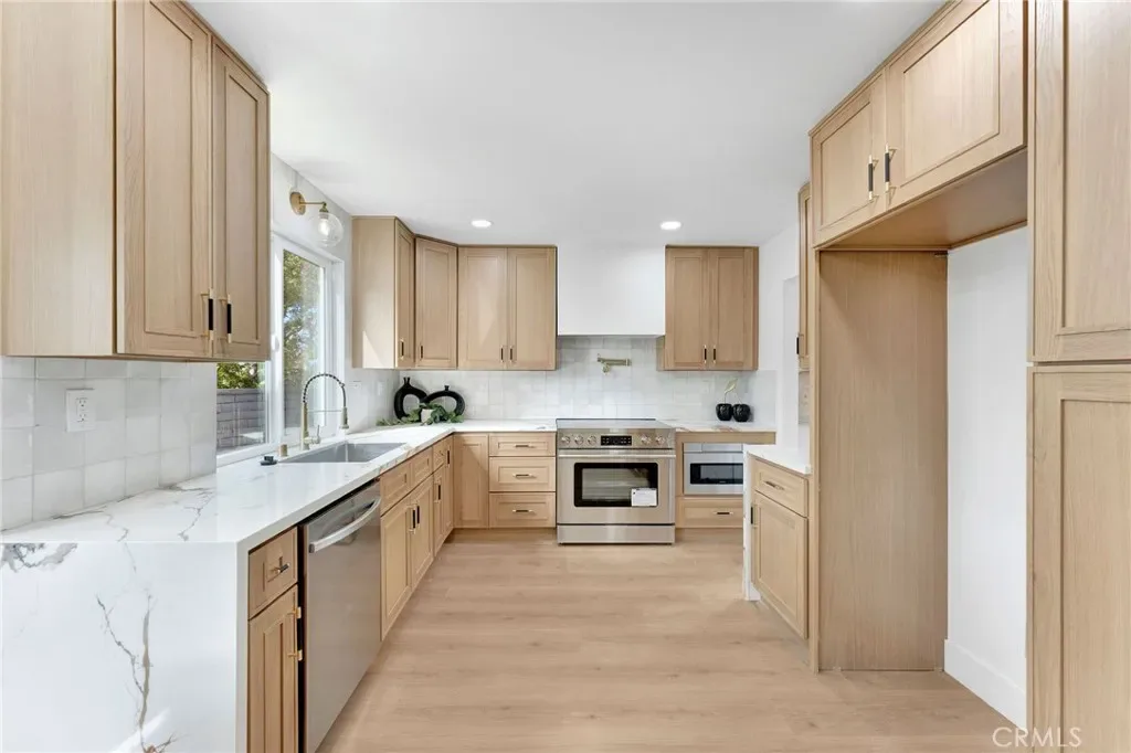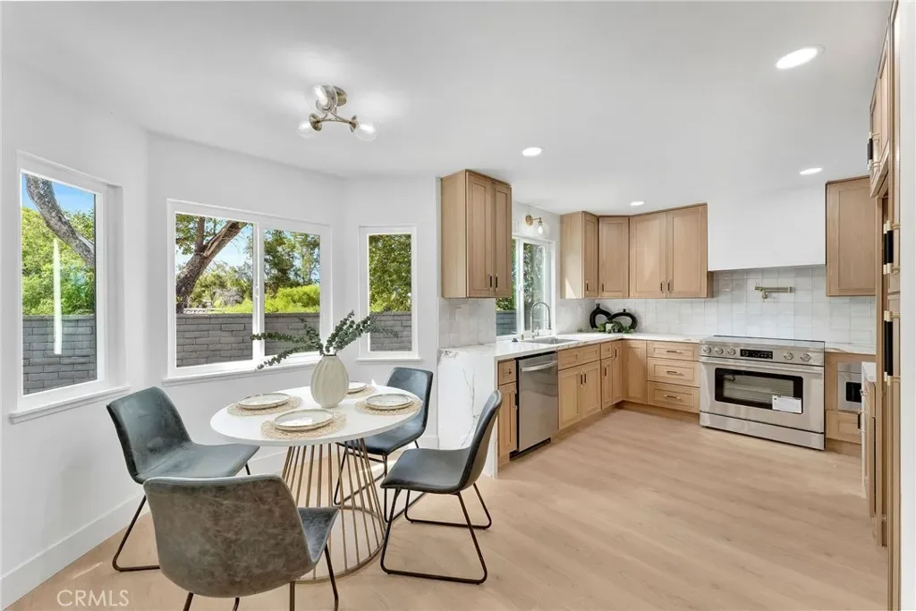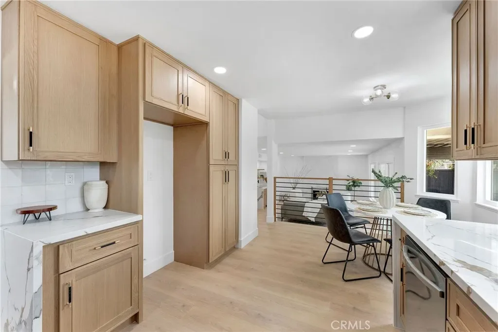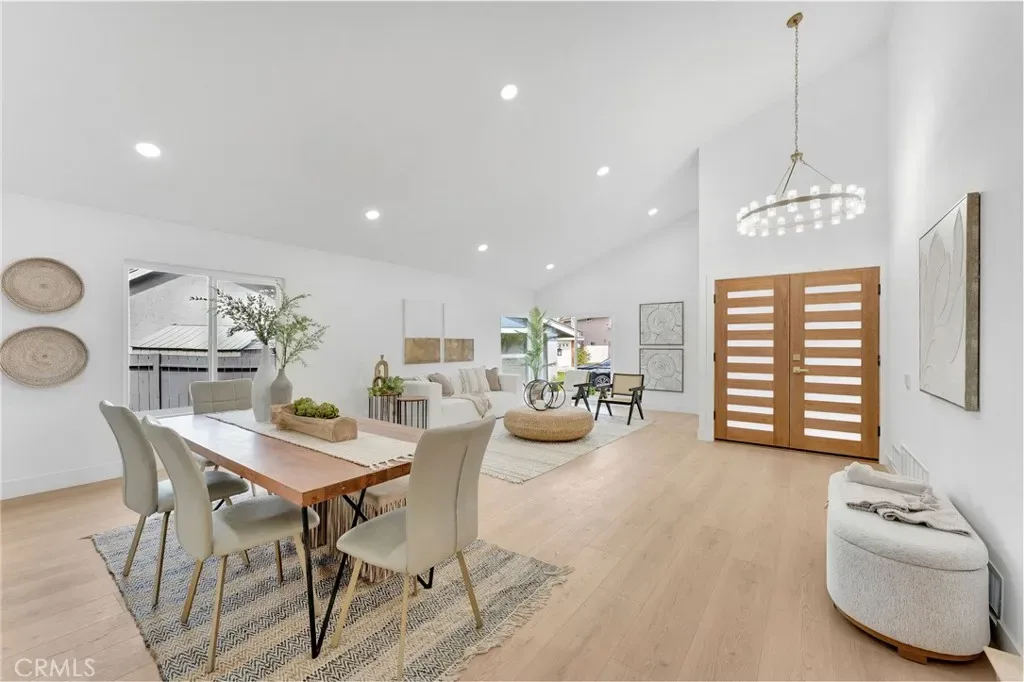 Remodeled 4-bedroom, 3-bath home in Lake Forest featuring an open-concept layout, vaulted ceilings, and abundant natural light. Updated kitchen with quartz counters and custom cabinetry opens to spacious living areas with a fireplace and built-in dry bar. Stylishly upgraded bathrooms, including a dual vanity primary suite. Private backyard and access to Sun & Sail Club amenities with pools, tennis, and lake access. Close to parks, schools, and shopping.