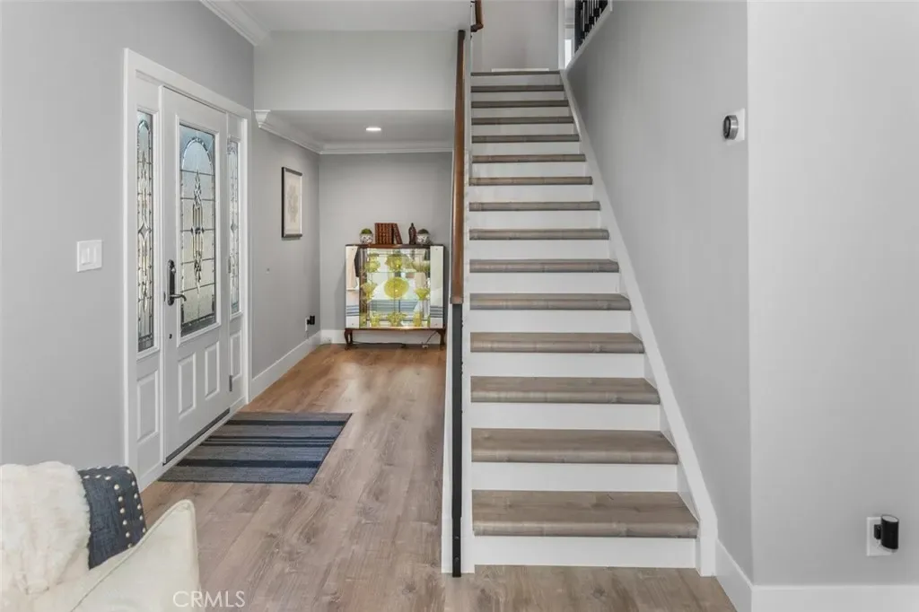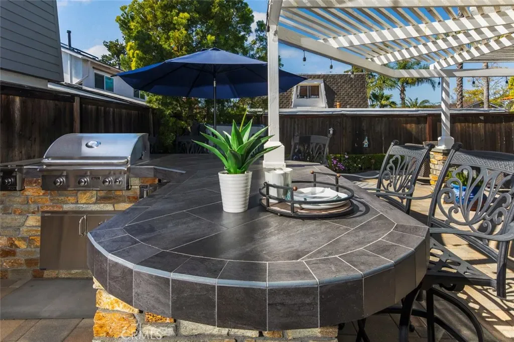 Set behind lush landscaping and warm architectural lighting, this thoughtfully designed lakeside residence blends timeless architecture with effortless California indoor-outdoor living. Inside, the main living areas are defined by soaring windows that draw in an abundance of natural light, creating an airy and inviting atmosphere throughout the home. The open layout flows seamlessly between the living and dining spaces into a beautifully appointed kitchen, where classic cabinetry, stone countertops, and an oversized island create a setting that feels both elegant and highly functional for everyday living and entertaining. The backyard extends the home’s living experience outdoors. A spacious setting features a built-in kitchen, multiple lounge and dining areas, and a private jacuzzi beneath a pergola, creating the perfect environment for relaxed evenings or effortless entertaining. Upstairs, the primary suite serves as a private retreat with tranquil lake views captured through expansive windows and a private balcony. A built-in coffee bar adds a thoughtful touch to the morning routine, while the spa-inspired bathroom offers generous space and refined finishes. Two additional bedrooms are also located upstairs and share access to a massive balcony that stretches across the home, creating an elevated outdoor space overlooking the surrounding neighborhood. A fourth bedroom is conveniently located on the main level, ideal for guests or a private office. The result is a home that feels both welcoming and refined, where natural light, peaceful views, and thoughtfully designed indoor and outdoor spaces come together to create an atmosphere perfectly suited for everyday living and effortless entertaining.