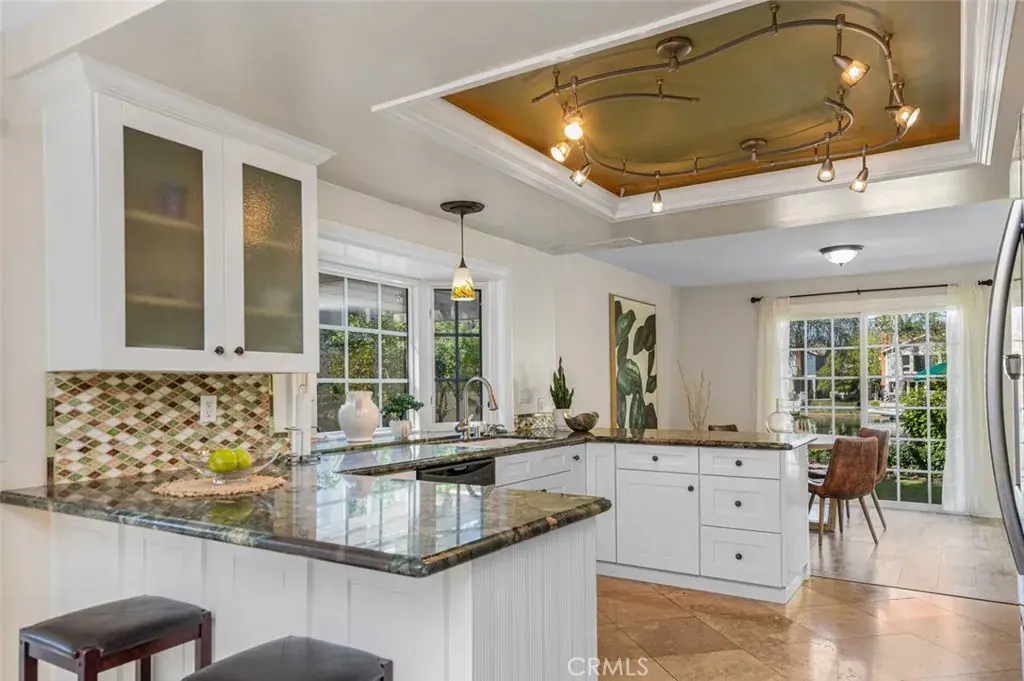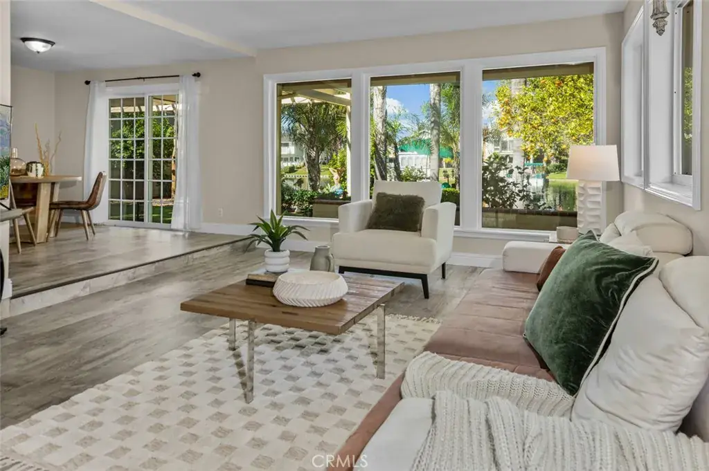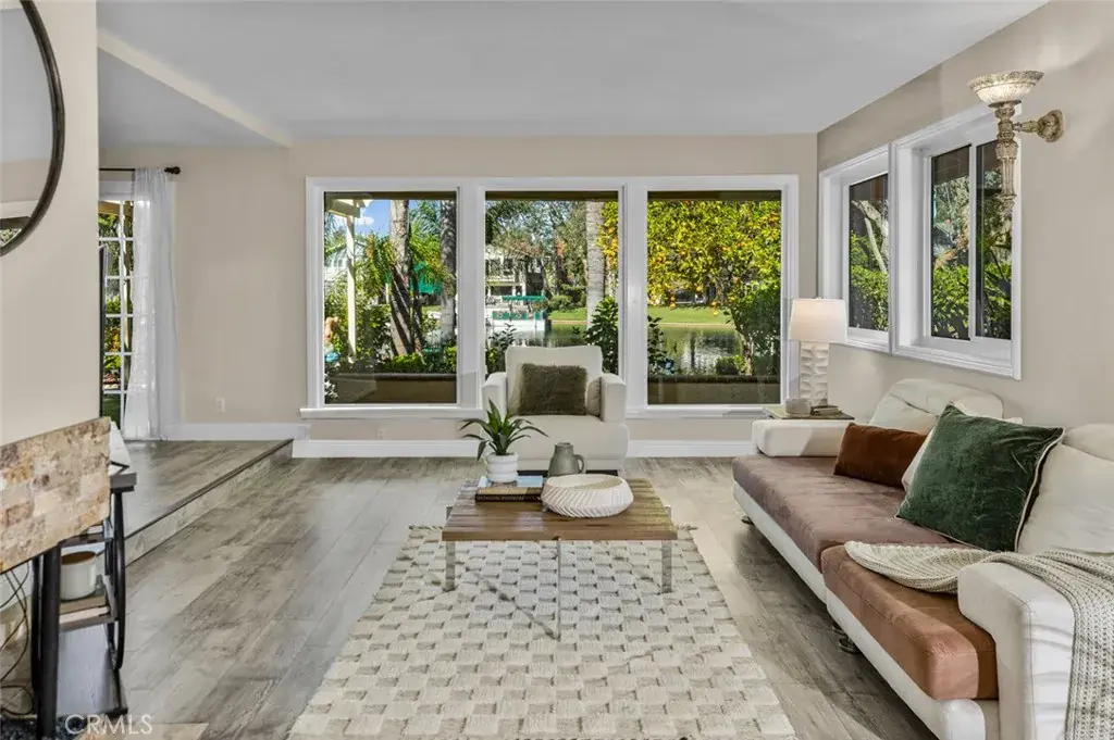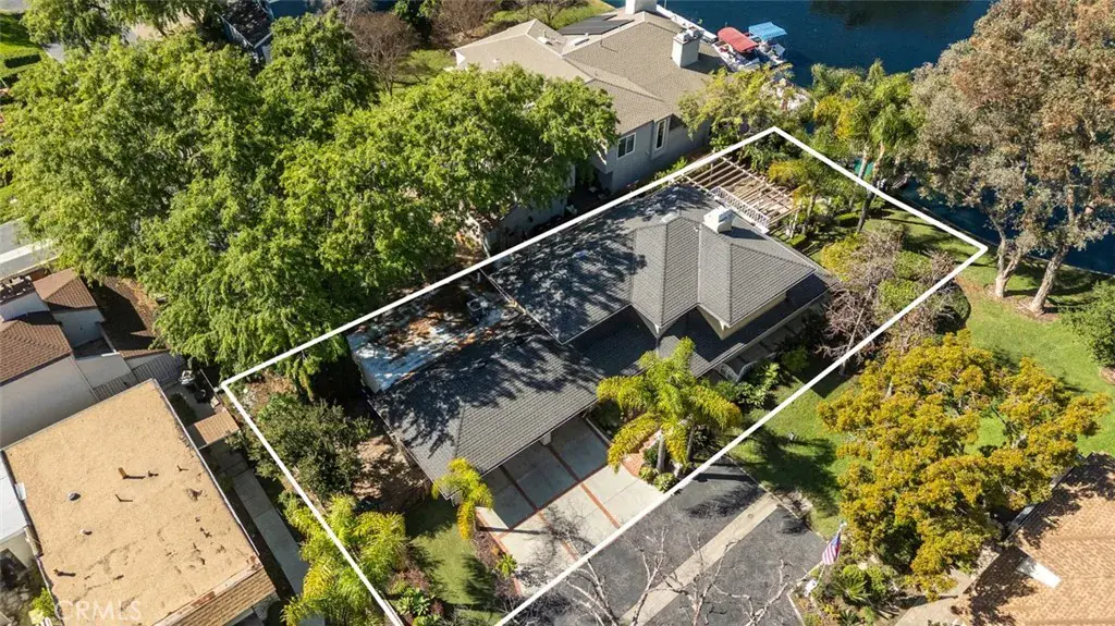 Positioned along the widest stretch of shoreline in Hidden Lakes, the residence sits beyond an expansive lawn and mature trees, creating a rare sense of depth between the home and the water. The scale of the parcel allows the lake to feel panoramic rather than immediate, private, quiet, and open in a way rarely experienced on waterfront properties. Inside, broad windows frame uninterrupted views across the water, drawing natural light deep into the home throughout the day. The layout lives comfortably toward the lake, allowing daily life to unfold around reflections, greenery, and sky. The interior has been thoughtfully updated while remaining warm and livable. Two bedrooms are located on the main level for flexibility and accessibility, while the kitchen has been refreshed to open naturally toward the living spaces and views beyond. Upstairs, the primary suite serves as a quiet retreat, featuring a spacious bedroom, private balcony overlooking the lake, and a refined en suite bath highlighted by a custom walk-in shower. Outdoors, the grounds read more like a private garden than a backyard, with a dock along the shoreline, shaded pergola seating, fire pit lounge, and multiple areas to gather or retreat. The distance across the water preserves calm sightlines and reinforces the sense of space that defines the property. Practicality matches the setting with a full three car garage and separate RV parking, offering flexibility rarely available on lakefront homes and further emphasizing the scale of the lot. More than a waterfront residence, this is a true shoreline estate defined by land, proportion, and permanence in a way that can no longer be recreated within Lake Forest.