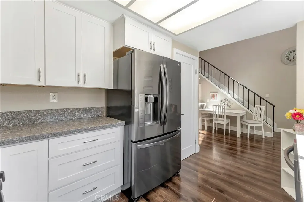 This beautifully appointed, spacious home provides two bedrooms, two bathrooms, and a large loft, a versatile space for an office or additional living area. This home has been completely remodeled. The large kitchen has been thoughtfully designed with custom cabinetry, spacious pantry, plenty of cupboard and countertop space, and newer stainless-steel appliances. Recent upgrades include beautiful vinyl flooring throughout, remodeled bathrooms, complete PEX re-pipe, LED lighting, ceiling fans in the bedrooms and loft, fresh paint, indoor laundry with washer and dryer included. The primary bedroom is an ensuite with private bathroom and walk-in closet. The secondary bedroom is spacious. The open design of this floor plan is perfect for comfortable living and entertaining. The private patio is wonderful for enjoying the sunshine and potting plants for your home-grown veggies. The one car garage is situated directly below the home providing easy access and extra storage space. You will love the secluded feeling with mature trees surrounding the home. The community pool is across the way, a wonderful place to relax after a dip in the pool. Close to everything yet with that country feel! Enjoy the Lake Forest Sports Park, hiking and biking trails, restaurants and shopping, the toll roads, all within minutes of your new home! Race to this one, you will delight in what you see!
