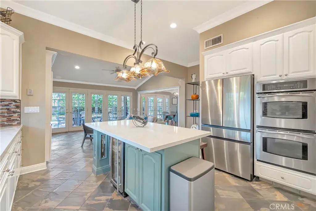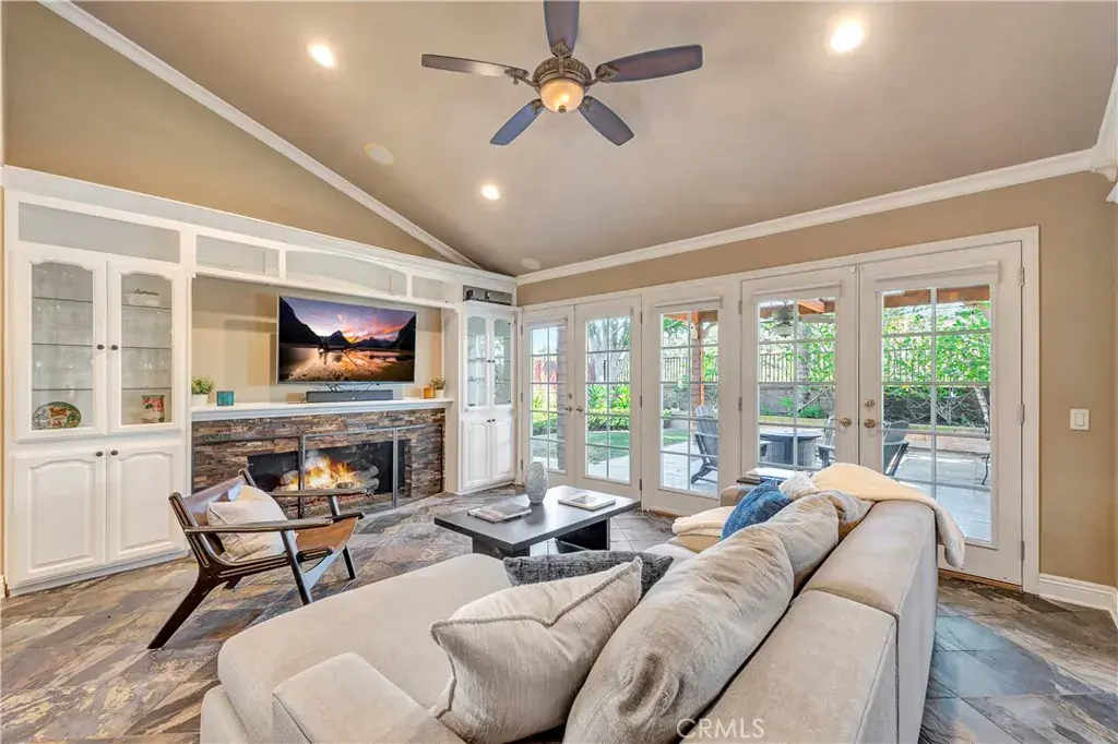 This delightful single story home is situated in the exclusive community of Montbury on the Hill. Nestled in North Lake Forest, this sought-after community features wide streets, customized homes, equestrian and walking trails, two private tennis courts, and two pickle ball courts, all for enhancing your daily enjoyment. Located close to everything, yet you will feel like you are in the country! Simple elegance describes the beauty of this semi-custom home with volume ceilings & French doors throughout; the spacious open floor plan welcomes natural light throughout the entire home. Beautifully remodeled kitchen with stainless steel appliances – gas stovetop, refrigerator, double-oven, microwave, dishwasher; custom cabinetry, gorgeous quartz countertops, spacious center island with wine refrigerator, and custom tile backsplash. A bonus is the adjacent separate pantry area with sink, wine rack, and custom cabinetry. The delightful living room features a wood burning fireplace and custom built-in cabinetry. Entertain in the dining area with coffered ceiling or relax in the family room with fireplace and built-in cabinets. French doors open from each room to the exceptional entertaining back yard. Recessed LED lighting, upgraded light fixtures, and hardwood flooring add to the beauty of this home. The peaceful, spacious master bedroom suite is complimented with volume ceilings, recessed can-lights, built-in cabinetry, and a romantic fireplace. The fully remodeled master bathroom has a separate tub & shower. The large secondary bedrooms, the remodeled secondary bathroom, and the interior laundry room, including the washer and dryer, enhance this fabulous home. A large second-floor bonus room is a huge plus! Privacy abounds in the rear yard for relaxation or smelling the wonderful aroma of cooking on the built-in barbecue. There is ample parking in the 3-car garage with epoxy floor finish and built-in cabinetry, or on the large driveway. Award winning schools, Toll Road access closeness, shopping, and dining are additional amenities for this fabulous home – A must-see! Come to the open house, and make this exceptional home your own! Let the fun begin!