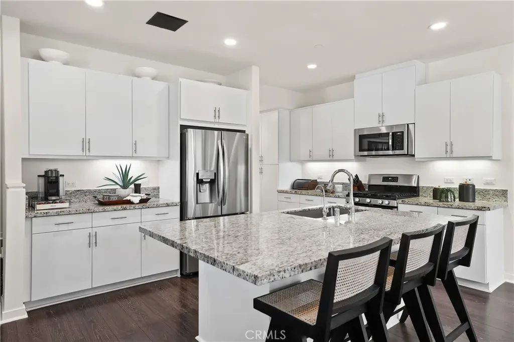 Located in the Coveted Resort-Style Community of Baker Ranch, 12 Prominence is a Beautiful 3 Bedroom 2.5 Bathroom End Unit Residence Featuring a PREMIUM OVERSIZED Extended Front Patio. Curated for the Modern Day Buyer as the Ultimate At Home Sanctuary this home Blends Gorgeous Design Features with Supreme Functionality. As you enter the Exquisite Details impress with Wood Look Luxury Vinyl Flooring, Recessed Lights, Custom Designer Light Fixtures and a Light & Bright Interior with Multiple Windows and incredible natural light. The Gourmet Kitchen is a Chef’s Dream…Fully Upgraded with Stainless Steel Appliances, White Cabinets, Neutral Granite Center Island w/bar seating and Walk-In Pantry. Ideal for Entertaining, the Designated Dinning Area is Spacious Enough to Accommodate All Your Guests while Overlooking The Tranquil Front Yard Views! On the second floor you will find all 3 Bedrooms, 2 Bathrooms and the Convenient Upstairs Laundry Room. Start your New Wellness Routine in the Primary Suite Retreat w/a Light & Bright Interior Overlooking Picturesque Mountain Views. The Tranquil Spa Like Primary Bathroom features a Restorative Glass Shower, Dual Vanities and a Spacious Walk In Closet. Discover The Front Patio provides the perfect space for Indoor/Outdoor Living. Located on a Picturesque Tree Lined street offering Supreme Privacy the Location of this home can not be overlooked! Additional Features of this residence include a Spacious 2 Car Garage, Tankless Water Heater and Water Filtration System. The Elevated Location of this home enjoys easy walking distance access to Exclusive Resort Style Baker Ranch Amenities including 3 Swimming Pools, Tennis Courts, 8 Parks, Hiking and Biking Trails, Numerous Sports Courts, Dog Park, Clubhouse, etc..No Mello Roos and Low HOA… This One is Special…Do Not Wait To See it in Person!