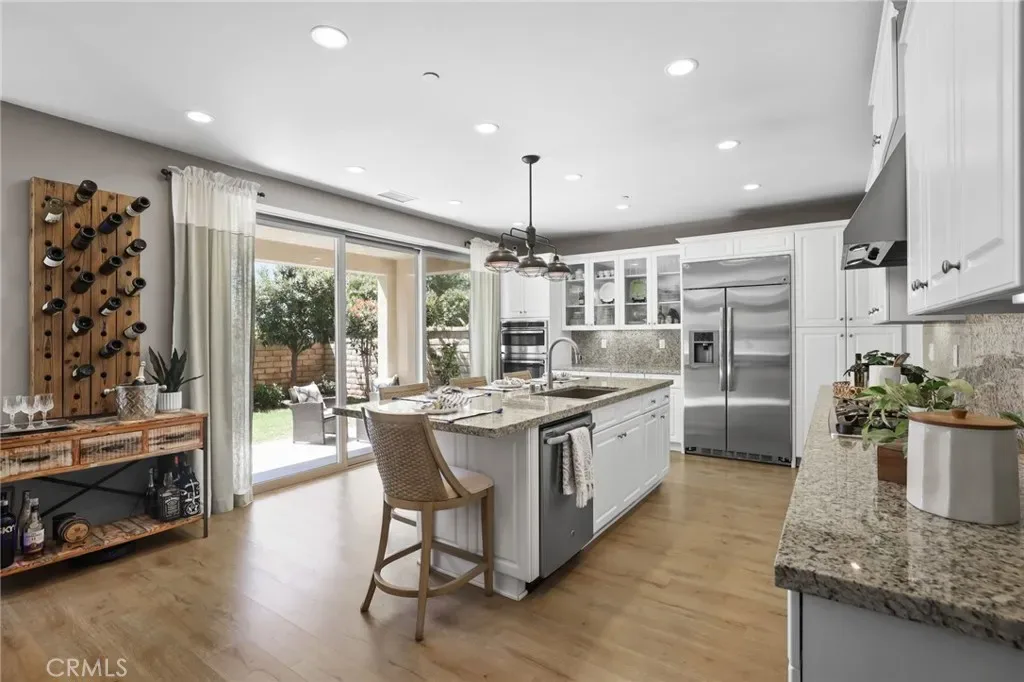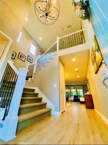 Located in the Prestigious Resort Style Community of Baker Ranch, this Elegant 3 Bed 3.5 Bath Turn-Key Residence has been Immaculately Maintained and upgraded throughout. Embrace the Indoor/Outdoor California Lifestyle. Soaring Cathedral Ceilings, Designer Paint, Upgraded Neutral Toned Wood Look Flooring and Wrought Iron Staircase greet you upon entrance and leads you to the open concept Great Room. Overlooking your Own Private Backyard Oasis, the Great Room is filled with Natural Sunlight and Spacious and accommodating for family gatherings. Continue into the Gourmet Kitchen featuring Upgraded Stainless Steel Appliances, Built-In Refrigerator, Upgraded White Cabinets, Granite Backsplash, Upgraded Sink, Designer Light Fixture and a Massive Center Island w/ Beautiful Granite Counter Tops w/Bar Seating. Continue through the Sliding Glass Panel Door outside to the Private Backyard to enjoy Lush Landscaping, Natural Fruit Trees, Custom Outdoor Lighting and Tranquil Sunsets. Embrace the Indoor/Outdoor California Lifestyle we all love! Upstairs you will find the Multi-Purpose Loft, Convenient Upstairs Laundry and 3 Bedrooms each w/attached individual bathrooms. ThePrimary Suite Retreat is Light, Bright and Spacious and leads to the fully upgraded Spa Like Primary bathroom featuring upgraded Tile Flooring, Neutral Toned Granite Counter Tops, and a Restorative Glass Walk-In Shower. Additional features for the Modern Day Buyer include Water Softener and a spacious Two Car Garage with Epoxy Flooring, Level 2 EV Charger, Built-In Steel Garage Cabinets w/ Work Bench. Ideally located just a short walk to Resort Style Amenities including Hiking Trails, Swimming Pool, Tennis Courts & Clubhouse…No Mello-Roos and Low HOA. Beautiful Home..This is the One!