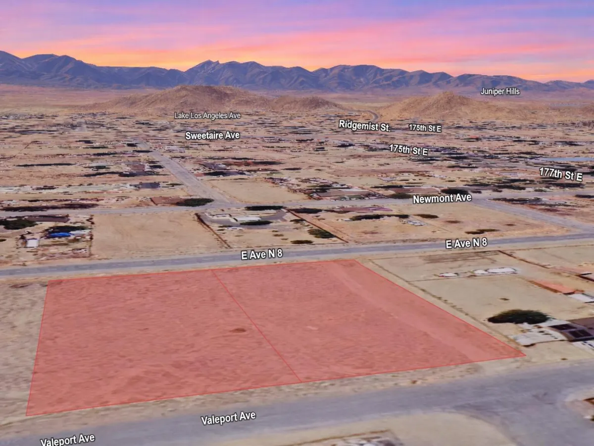 Great opportunity to own residential land near Valeport Ave and 178th St in the Lake Los Angeles area! This parcel offers a peaceful High Desert setting with wide open space, scenic views, and nearby development. Whether you’re looking to build a custom home, invest in land, or secure property for future growth, this lot provides flexibility and potential. Enjoy expansive skies, beautiful desert landscapes, and convenient access to nearby highways, Palmdale amenities, and surrounding Antelope Valley communities. A solid opportunity in a growing area of Los Angeles County. All information provided is deemed reliable but not guaranteed. Property boundaries, zoning, utilities, access, grading, and development potential should be independently verified by buyer. Buyers are advised to conduct their own due diligence with the County of Los Angeles and appropriate agencies regarding land use, building requirements, zoning, and utility availability. Seller and listing agent make no warranties as to the accuracy of the information provided.