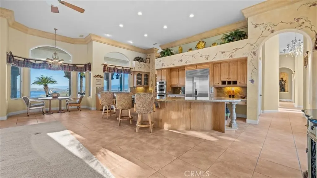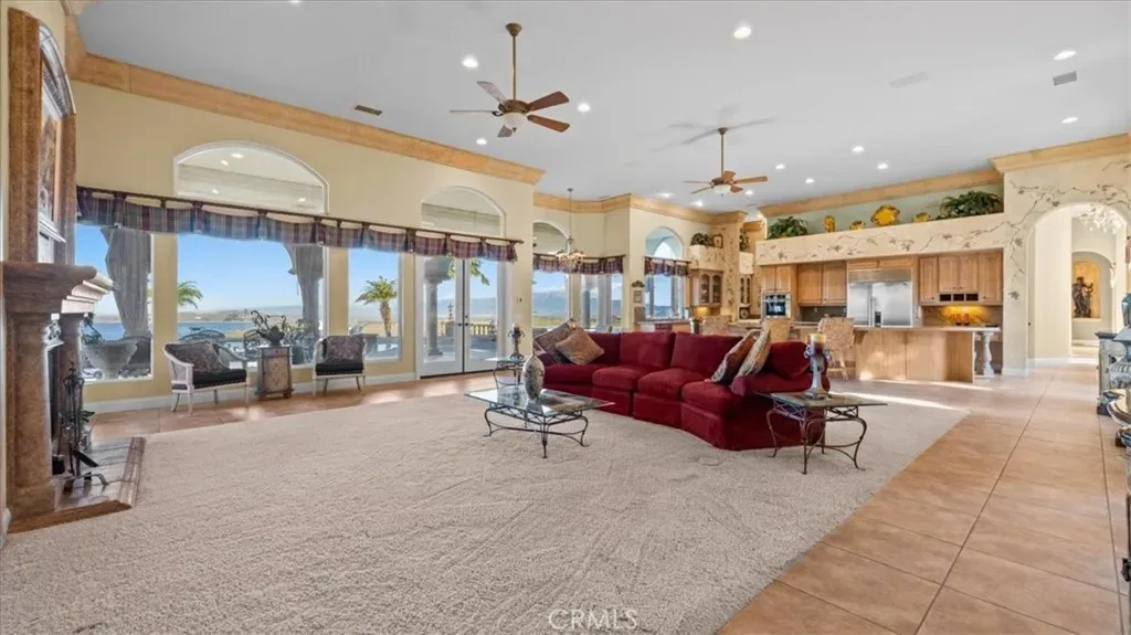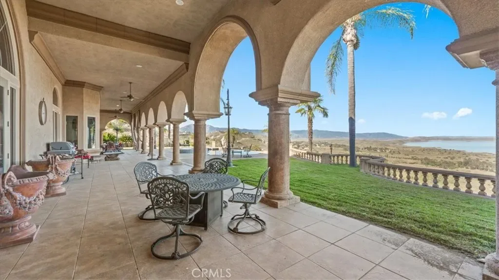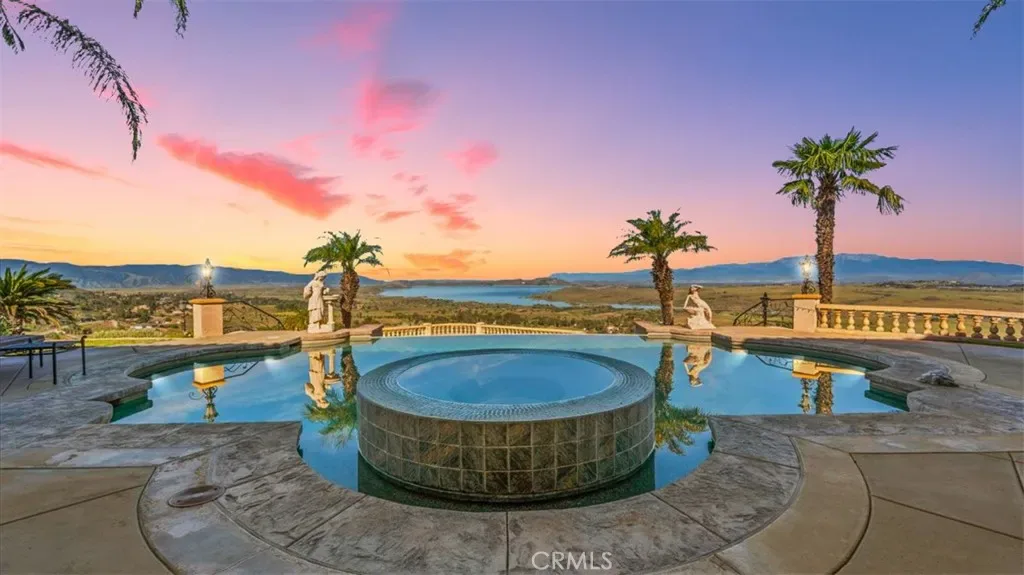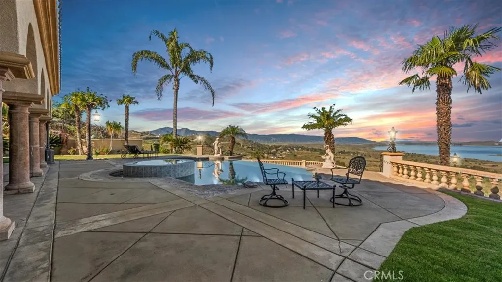 The property showcases 180 degree panoramic views over Lake Mathews, stretching toward Orange County in one direction and the San Bernardino Mountains and Big Bear in the other. Sunrises, sunsets, and evening lights create a dynamic and ever changing backdrop.