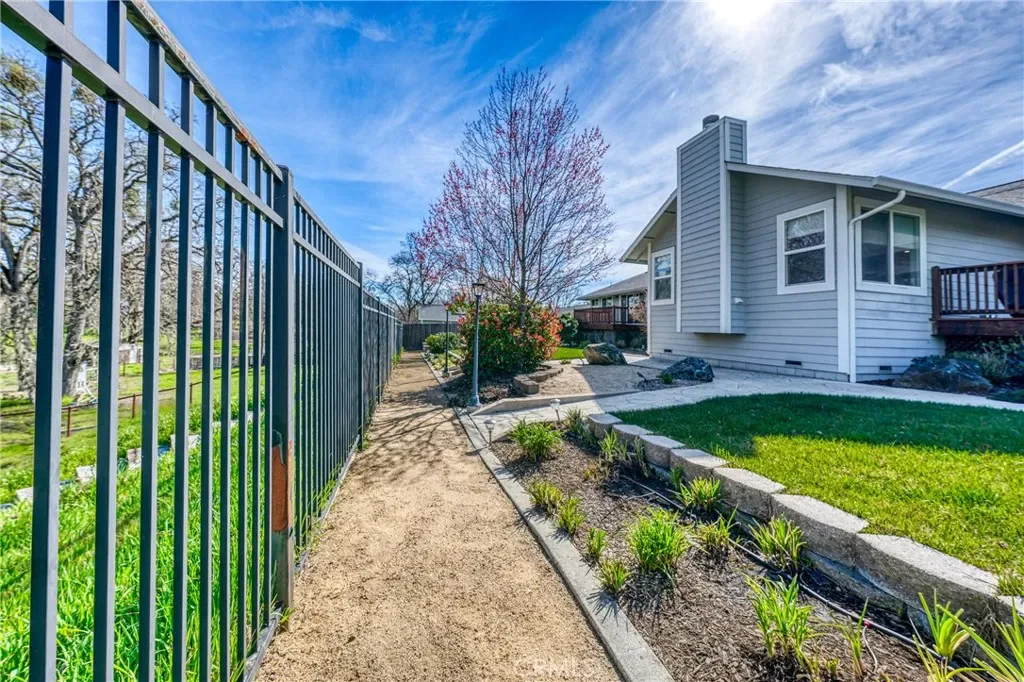 The landscaped grounds feature automated irrigation, mature landscaping, a fenced backyard with wrought iron fencing, and additional space suitable for animals. Conveniently located near Lakeport schools, the hospital, and Clear Lake.