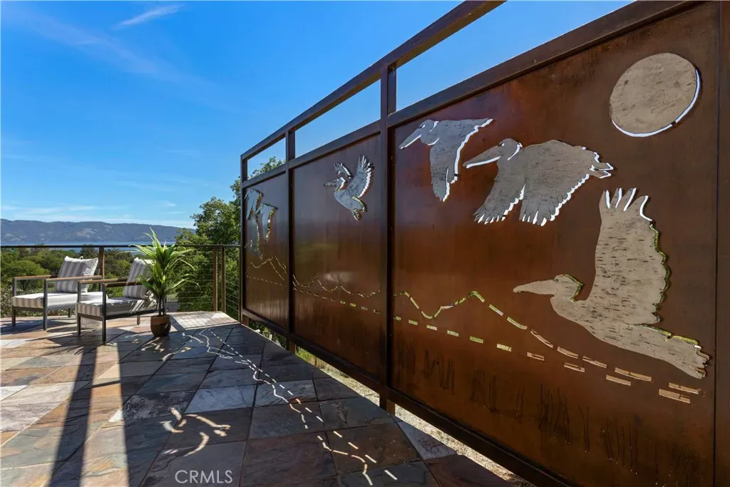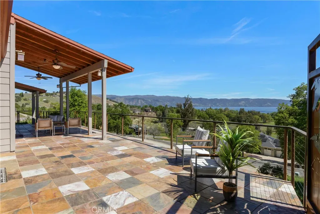 A covered slate deck extends the living space outdoors, with access from the kitchen, living room, and primary suite—ideal for relaxing or entertaining while taking in the view. The side yard, accessed from the primary suite, is privacy fenced with a lifetime warranty.