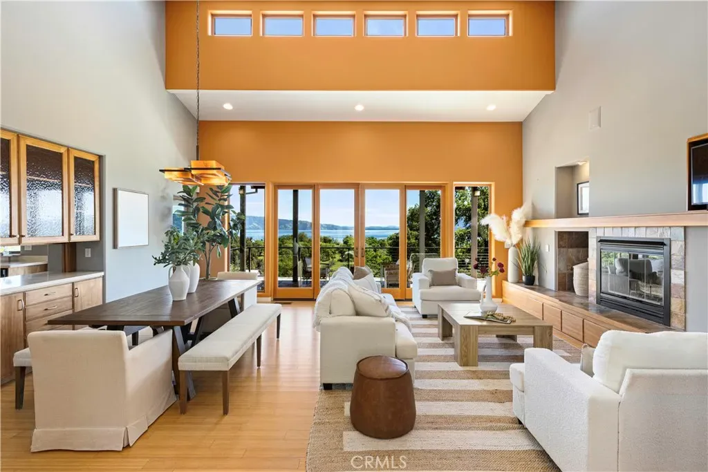 Unobstructed panoramic lake views steal the show in this architect-designed single-level home, where soaring ceilings and expansive Milgard sliding glass doors create a bright, open living space that brings the water into everyday living—visible from nearly every room, including the garage.