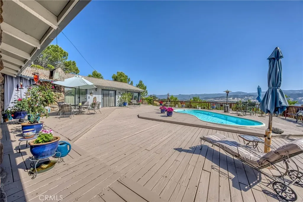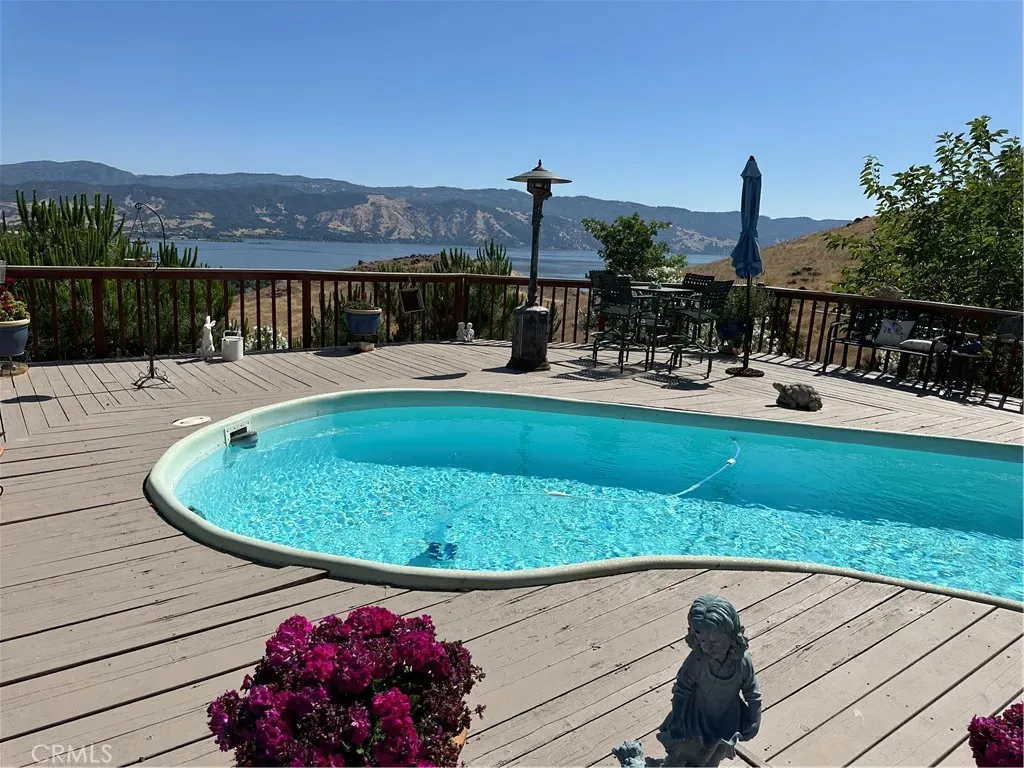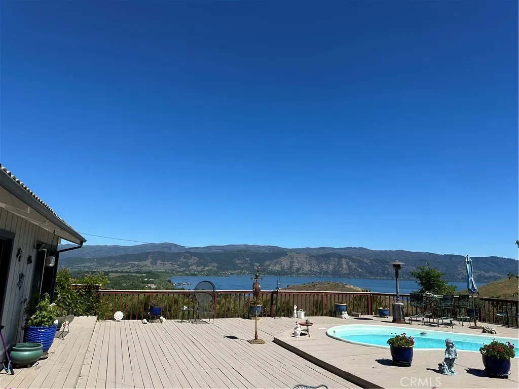 Step inside through a stunning entryway that sets the tone for the rest of the home. Thoughtfully designed with comfort and functionality in mind, the interior boasts quality craftmanship and plenty of natural light. Almost all rooms, including entryway, have slider doors to the expansive back decking and sparkling swimming pool with beautiful views of the lake, mountains and rolling hills creating indoor-outdoor living. This property features two 2-car garages, with workshop areas, – one attached, and another conveniently located next to it. Both offer easy access to the expansive back patio, deck and sparkling swimming pool, perfect for entertaining. Wake up in the master bedroom with walls of windows, offering breathtaking panoramic views. This 1+ acre property also features a paved circular driveway with a carport for easy access to the front door. A new heating and air-conditioning unit installed in 2025. Conveniently located, rural yet close to public docks, parks, boat launches, shopping, hospital and restaurants.