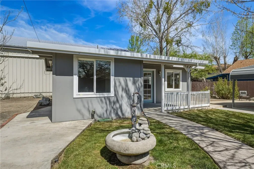 The home features an open and spacious layout with a large front living area and kitchenette. French doors lead to a covered front porch. A full bathroom with tub and shower sits off the main living area. The bedroom includes a large walk-in closet with washer and dryer and an additional side door leading directly into the yard. Recent improvements include newer windows from a 2010 remodel, new window coverings installed last year, new toilet and professionally installed underground sewer line to the city street in 2024, new mini split installed in 2025, and a brand new roof installed March 2026 with 30-year composition shingles. The oversized lot provides excellent flexibility with a 30’ x 40’ cement slab with a 20’ x 20’ metal carport, perfect for covered parking, a boat, or extra patio space. Double wide gates, rebuilt last year, provide easy access. The property also includes a detached single car garage with an automatic door and rear yard access, tons of off street parking, and fully fenced privacy! The yard features a garden shed, raised garden bed, and mature cherry, plum, and fig trees. This home is a great opportunity for first-time home buyers, fishermen and lake vacationers, or investors looking to add a rental property to their portfolio in desirable downtown Lakeport.