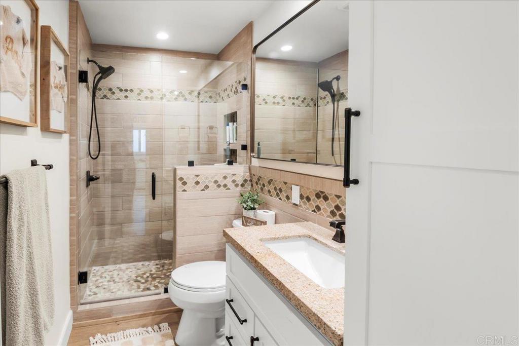 Fully renovated 2024 modern home with mountain views, resort-style pool, new HVAC, chef’s kitchen, energy-efficient windows, and turkey upgrades! Completely renovated in 2024, this move-in ready Lakeside home features mountain views, a modern open floor plan, all new stucco, windows, doors, plumbing, electrical, and luxury vinyl flooring. The updated kitchen includes new cabinets, countertops, and stainless-steel appliances. Enjoy a resort-style backyard with a gas fire pit, built in BBQ, outdoor fridge, new pool fences, upgraded irrigation, and drainage. Mechanical upgrades include a tankless water heater, HALO soft-water system, new HVAC, and a finished epoxy garage. Smart-home security with Ring cameras included. Space for all your toys. A turnkey property on a large lot in a quiet neighborhood, minutes from Lake Jennings!