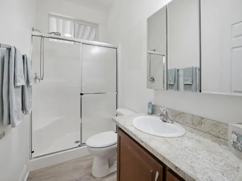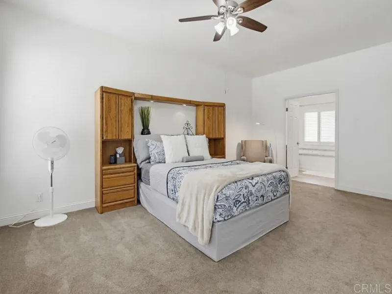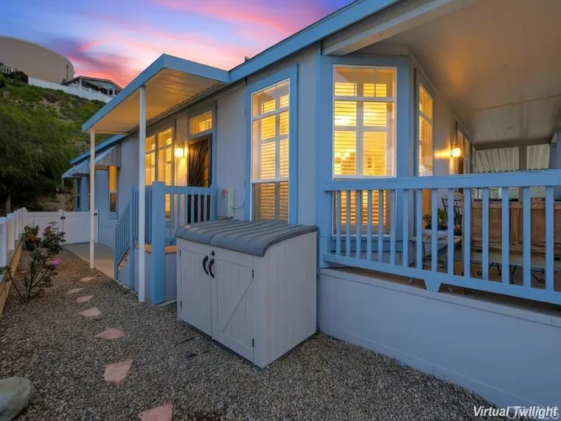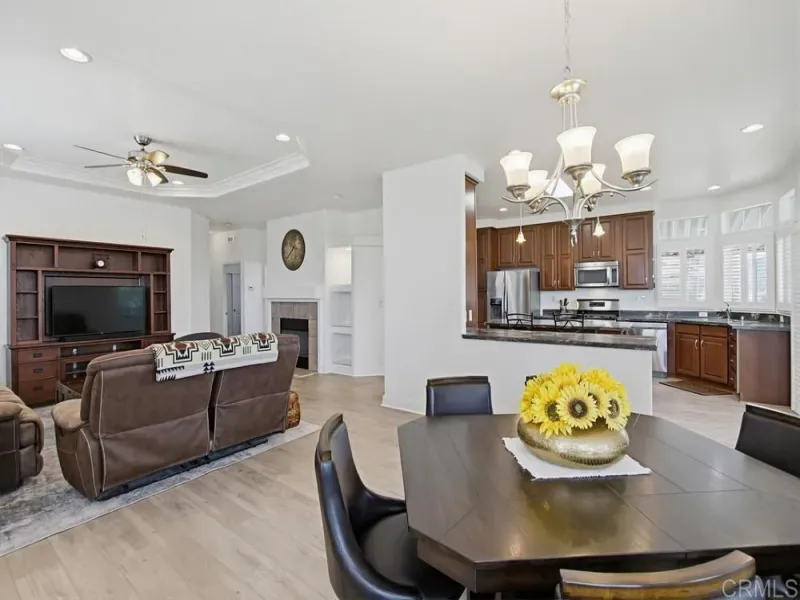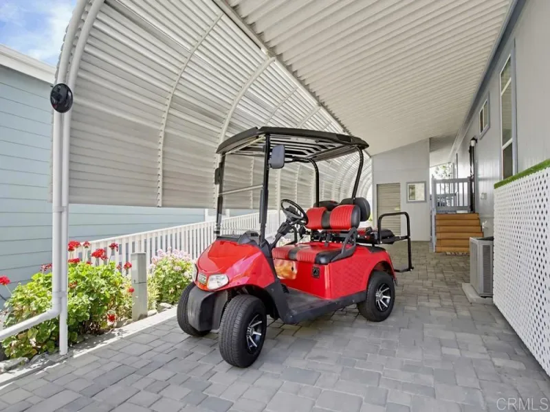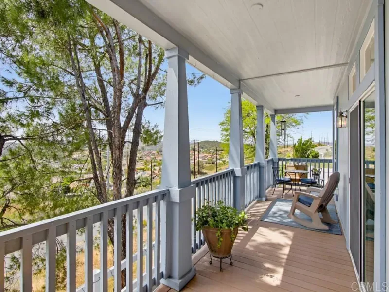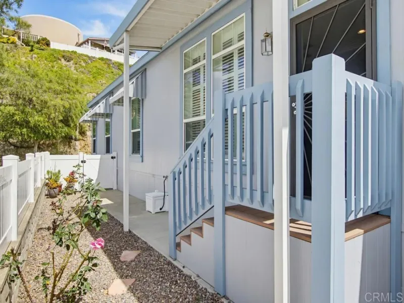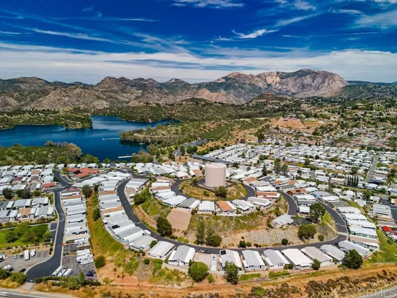 WELCOME HOME! Perched to capture an exceptional view of the surrounding mountains and valley, this beautifully maintained home offers a lifestyle that feels both peaceful and inspiring from the moment you arrive. Light pours in through tall shuttered windows, creating a warm and inviting atmosphere throughout the open-concept living space, where the kitchen, dining, and living areas flow effortlessly together. The kitchen is thoughtfully designed with stainless steel appliances, abundant cabinetry, pantry storage, and a large center island that naturally becomes the heart of the home. The living room features vaulted ceilings and a cozy fireplace, perfectly framing the stunning views beyond. The spacious primary suite offers a true retreat with a walk-in closet and a beautiful en-suite bathroom designed for comfort and relaxation. Step outside to enjoy multiple outdoor living spaces including a private “secret garden,” a low-maintenance fenced front yard, and an expansive covered deck where you can relax, entertain, and take in the scenery year-round. Additional highlights include paid-for solar, indoor laundry, a large storage unit, a covered carport with extended driveway, and a convenient lift providing easy access to the home. A golf cart is also available, adding to the ease of enjoying this vibrant community. Located in the highly desirable gated 55+ community of Lake Jennings Park Estates where you own the land and enjoy low HOA, residents have access to resort-style amenities including a clubhouse, pool, spa, fitness center, and more, all just minutes from Lake Jennings, hiking trails, shopping, dining, and a short drive to both the beaches and mountains.