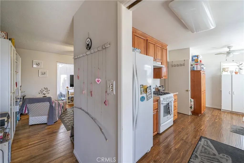 The kitchen offers ample cabinetry, a gas range, and included appliances, with a dedicated laundry area just beyond for added convenience. Bedrooms are well-sized, and the bathrooms has a walk-in tiled shower and modern touches.