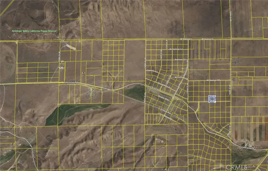Unique and desirable land parcel! Located very close to the world-famous Poppy Reserve at the west end of the Antelope Valley, this 2.5-acre property is a unique offering that presents a wide variety of potential uses. Such uses include building a custom home surrounded by the beautiful poppies, installing a mobile home, creating a campground site, starting a small farm, using it as a photography location, etc. Perhaps build a structure that can be used for AirBnB, capitalizing on the tourism to the area? Or just sit back and enjoy the natural beauty of the area on your own plot of land. This parcel also sits on W Ave G-12 so it’s easily accessible and usable without easements. It is also very close to paved Lancaster Rd, which connects to Ave I back into town. There are many possibilities with this property, and it is now available at an affordable price. Don’t miss out!