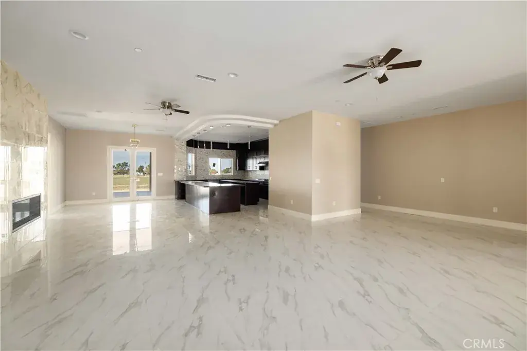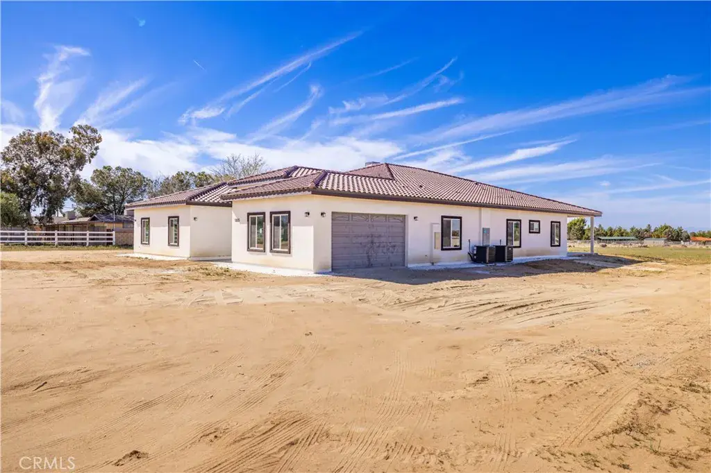 This custom home is in a rural area with room to raise horses and other animals. It is freeway close to commute. Enter through the custom glass doors to an open concept entry, living room, and dining room. The kitchen features two islands, dual ovens, five burner stove, wine cooler, and walk in pantry. Casual dining can be set up at one of the islands. The dining area is nearby with access to the covered patio. The fireplace is placed so that the large screen flat screen television can be placed on the wall above it. There are two primary bedrooms with on-suite bathrooms; another two bedrooms share a Hollywood style bathroom; and, one bedroom can be used as a guest room, den, studio, and much more. There is a bathroom nearby. The floors are exceptional with a custom medallion in the entry. Got vehicles? There are two – two car garages; one on each side of the house. One has additional space for a work bench and tools. The lot features extra room to build a pool area. And beyond that can be the area for animals. The solar system is paid. Front landscaping is in process.