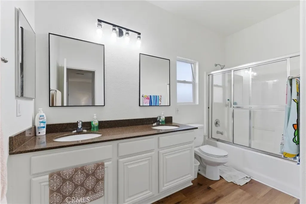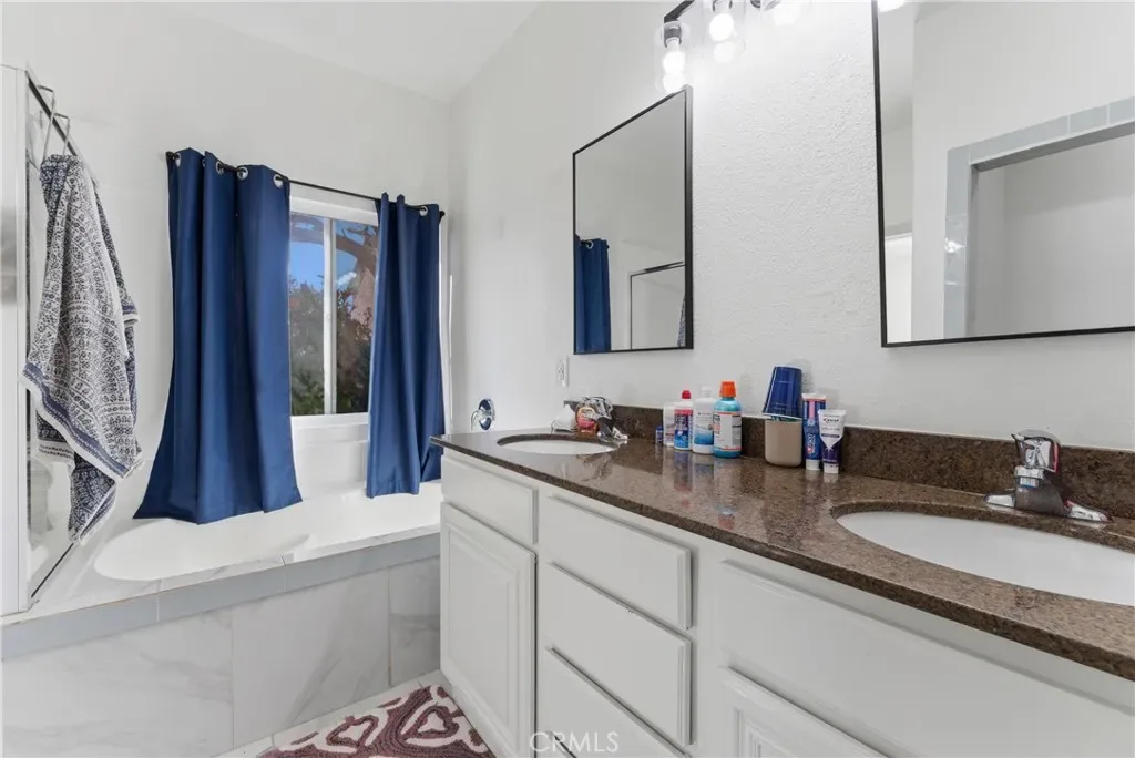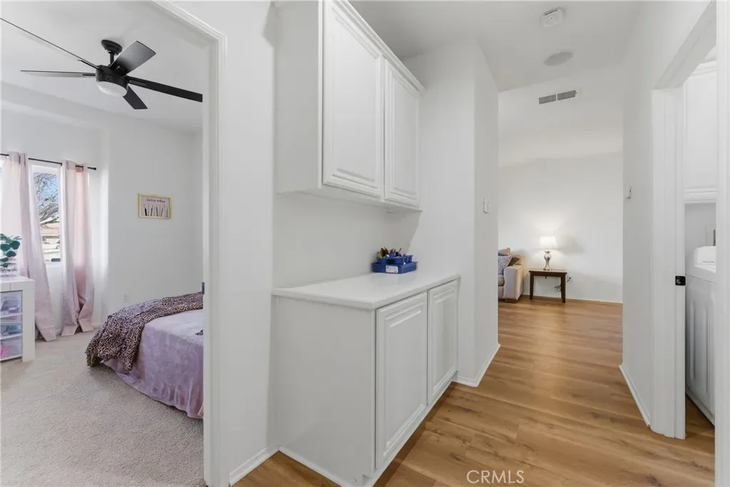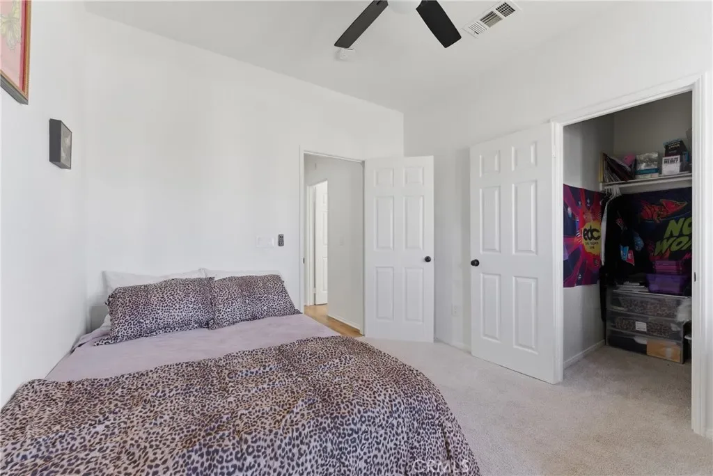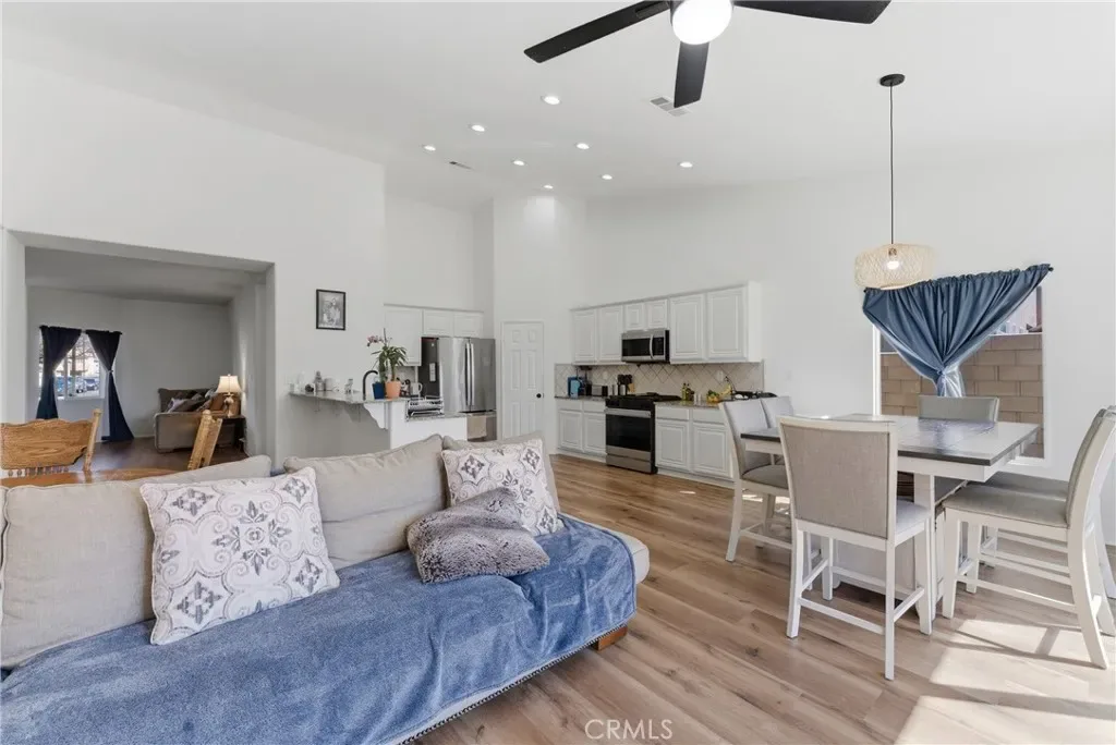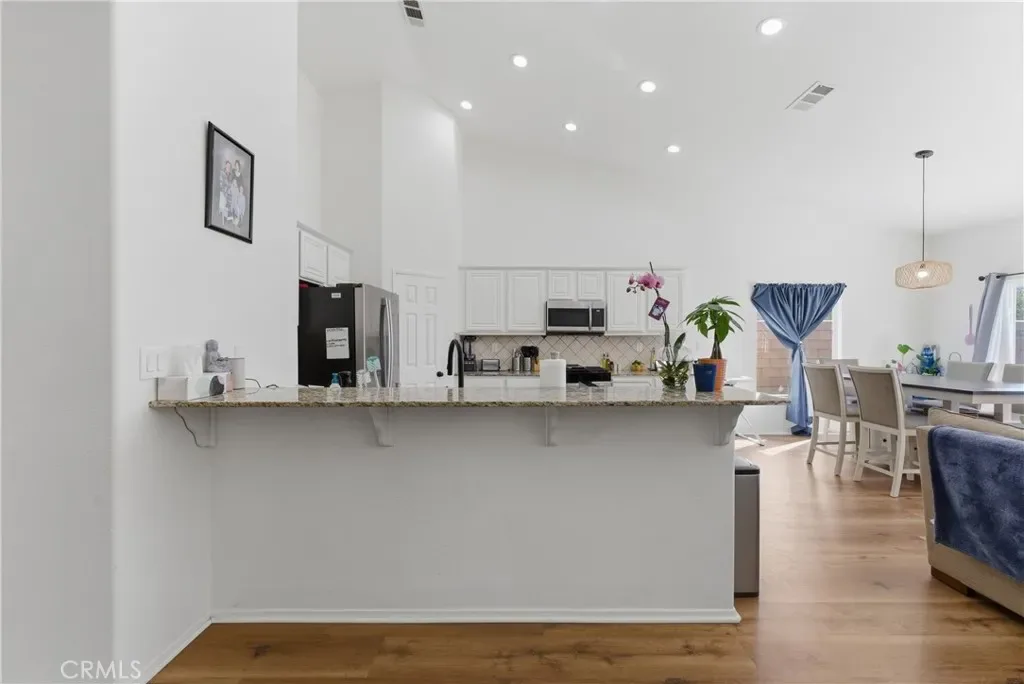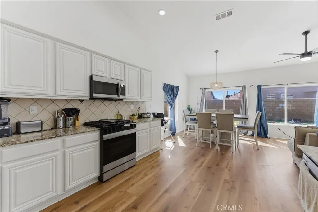 This property qualifies for a $30,000 grant! The home features new wood laminate flooring throughout the main living areas and plush new carpet in the bedrooms. The unique floor plan offers high ceilings and a desirable layout with bedrooms thoughtfully positioned on opposite sides of the home for added privacy. The kitchen is designed for both style and function, showcasing new Samsung stainless steel appliances including a gas range, microwave, and dishwasher. Granite countertops, freshly painted cabinetry, a large pantry, recessed LED lighting, and a breakfast bar complete the space, which opens seamlessly to the family room—perfect for entertaining.Natural light fills the home, highlighting the spacious layout and quality finishes. Three of the four bedrooms feature walk-in closets, while the oversized primary suite includes a large walk-in closet and a beautifully updated en-suite bathroom with dual sinks and elegant tile work. Additional highlights include a durable tile roof and a fully enclosed backyard with block walls, offering a blank canvas ready for your landscaping vision. This move-in ready home truly defines turnkey living. Don’t miss the opportunity to make it yours.
