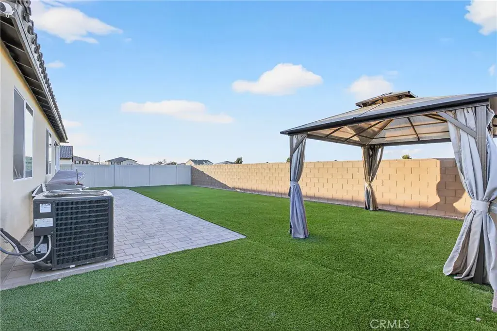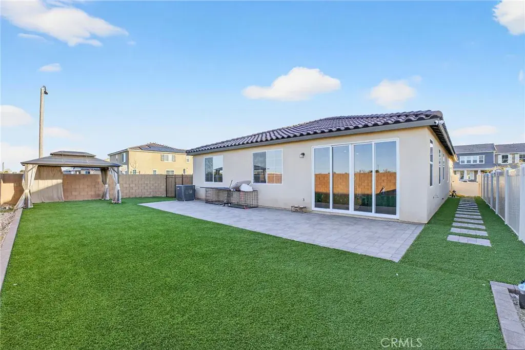 Outdoors, the backyard has been thoughtfully finished with turf and a paver walkway, creating a stylish, low-maintenance space ideal for gatherings, play, or relaxation. Solar panels enhance energy efficiency and underscore the home’s modern sensibility.