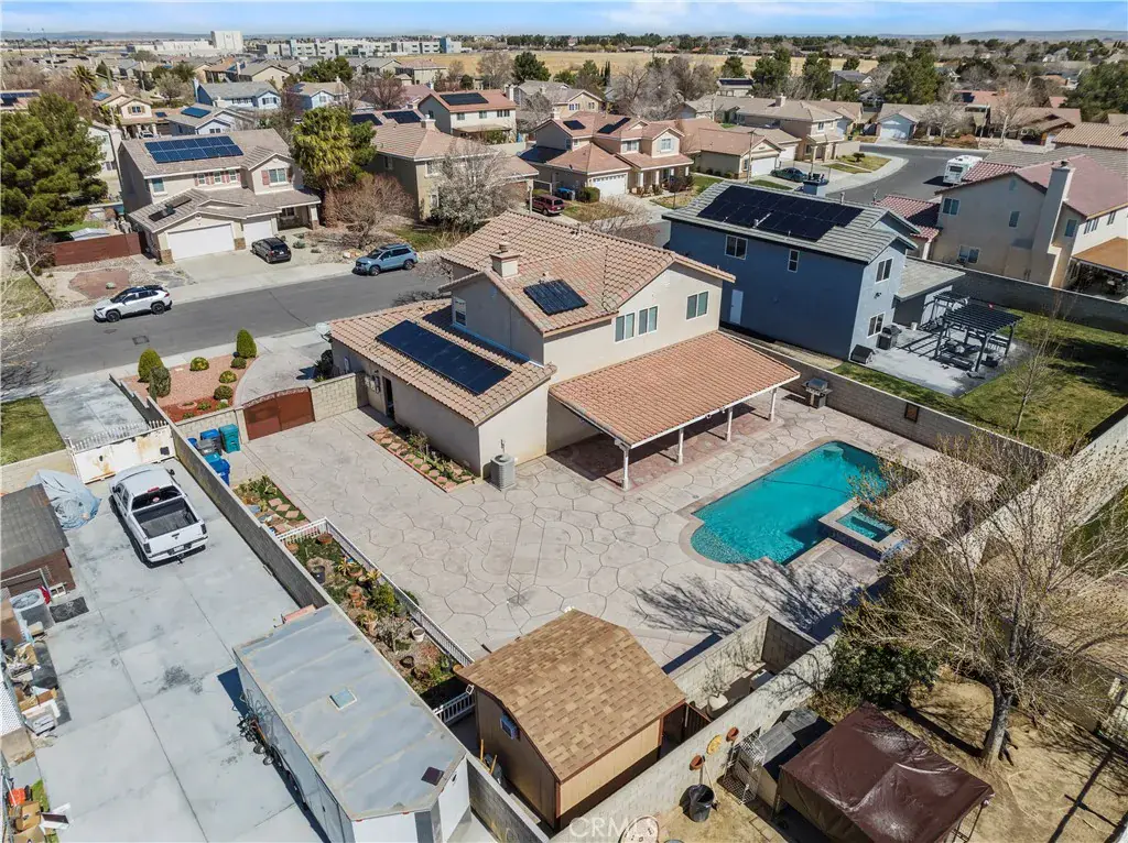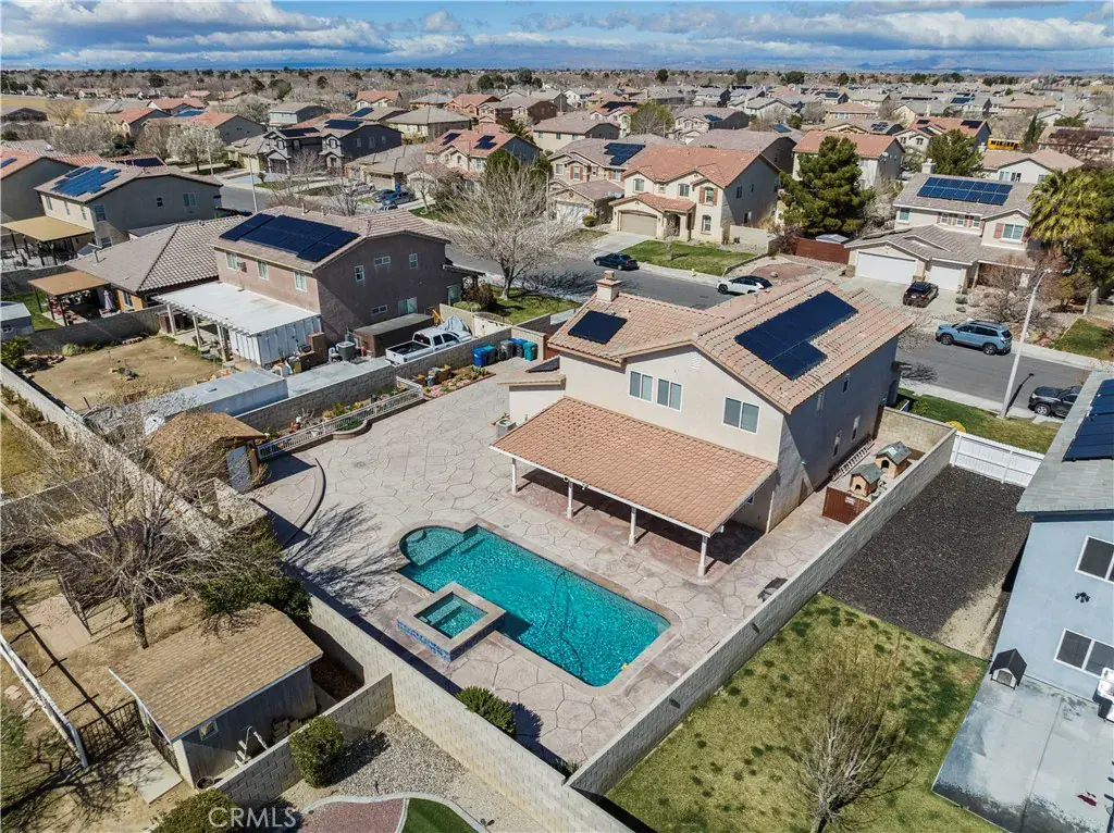 Welcome to this stunning 5-bedroom, 3-bath home offering 2,373 sq. ft. of elegant living space on a spacious 9,304 sq. ft. lot—an entertainer’s dream! Enjoy a bright formal living and dining area with stylish laminate flooring throughout. The gourmet kitchen features a large island and opens to a cozy family room with a fireplace. A main-floor bedroom, full bath, and laundry room add convenience. Energy-efficient leased solar panels help lower utility costs. Step outside to your private resort-style backyard with custom stamped concrete, a sparkling pool, pool house with a full bath, and RV access. A 3-car garage and extended driveway provide ample parking. Close to parks, shopping, and freeway access—this home truly has it all! Don’t miss the chance to own this incredible property—schedule your private tour today!