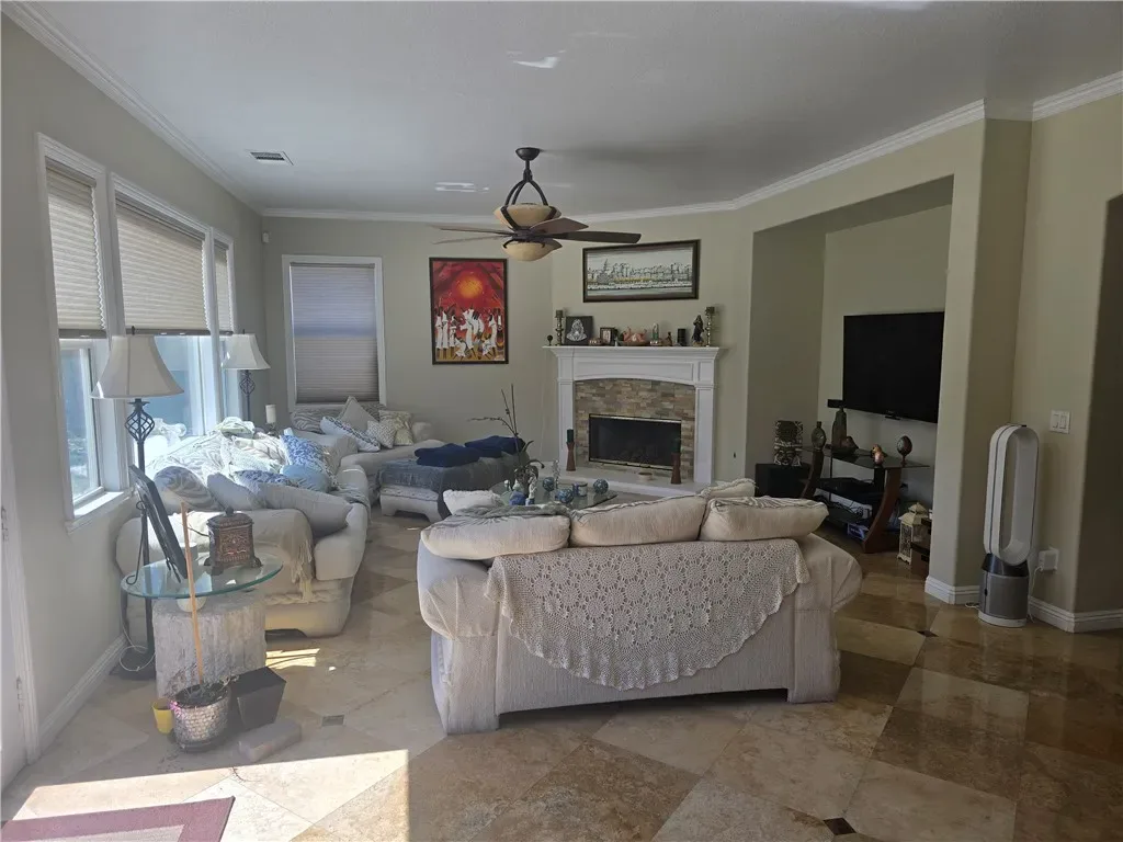Welcome to this beautiful and desirable home in the quiet, friendly and prestigious gated community of Portofino Estates. This elegant home features 5 bedrooms, 4 full bathrooms and 3 car garage with a generous size driveway. This gorgeous open floorplan layout offers high ceilings in the living room area with plenty of natural light throughout, tile and wooden laminate flooring throughout most of the downstairs area, stainless steel kitchen appliances, granite countertops, gas fireplace in the family room, a great size bedroom downstairs with a full bathroom nearby for easy access. Upstairs offer an oversized master bedroom with a relaxing retreat or bonus room, a separate shower and bathtub with double sink vanity with large walk-in closet, there are Jack and Jill bedrooms, and a separate bedroom with its own full bathroom ideal for guests. This property is centrally and conveniently located near parks, schools, shopping centers, restaurants and entertainment with easy access to major highways and freeways. It’s a must see! Don’t miss this opportunity to make this lovely and elegant home your own. Make and schedule your showing appointment today!!!