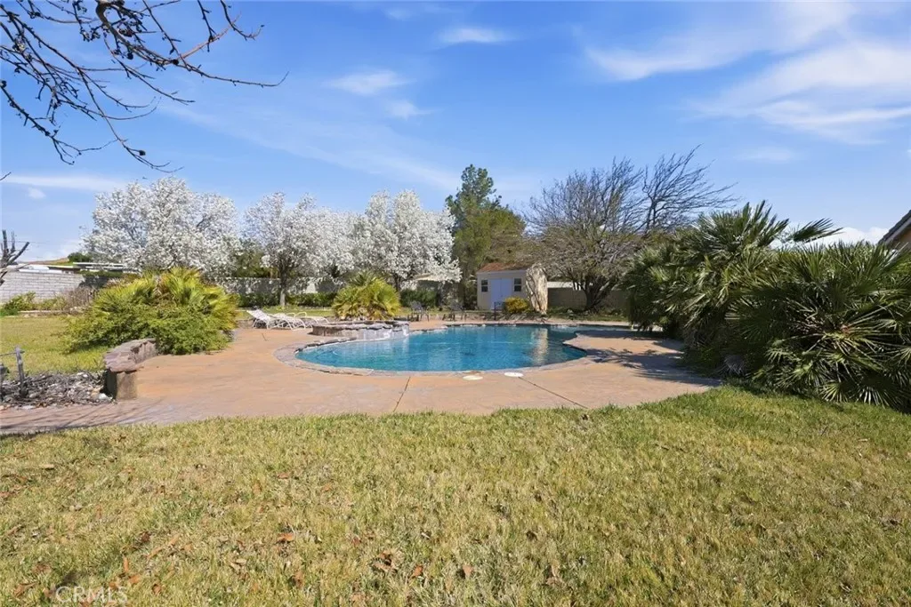 The backyard is truly a private resort-style oasis, perfect for entertaining family and friends. Enjoy the pool and spa, built-in BBQ grill, and stamped concrete patio beneath a large covered high-ceiling patio, creating the ideal space for gatherings and outdoor dining. The beautifully landscaped yard, RV access, and private setting provide both convenience and plenty of room for toys, vehicles, or additional storage.