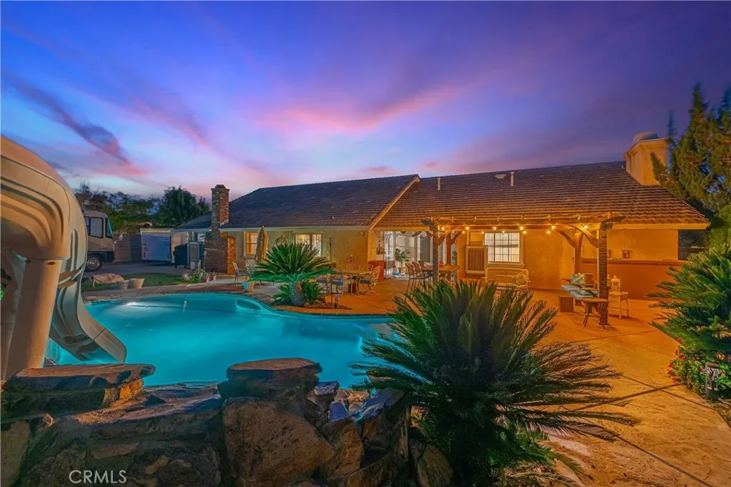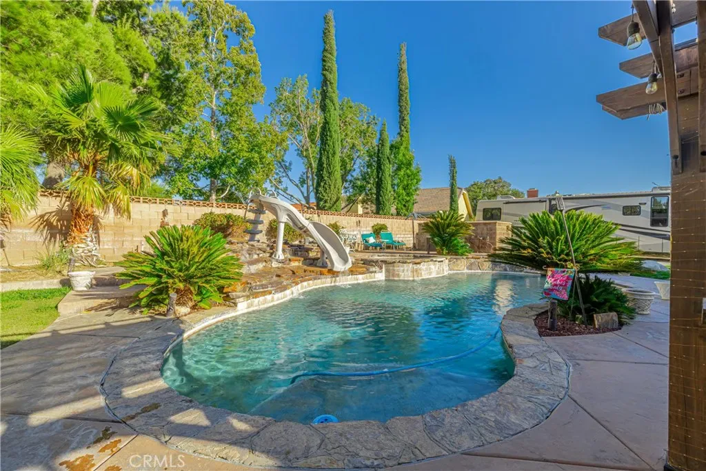 Westside Pool Home!! Gorgeous Custom Single Story in Villamont! 4 + 2.5. 3027 SF. Built in 1984. 2 X 6 Construction! Tile Roof. 2-Car Garage with Roll-up Door. Gated-Paved RV Access is Wide AND Deep! Amazing Curb Appeal! Front Siding with Brick Accents and Wood Trim. Walkway has Pilasters with Lights! Custom Entry Door with Sidelights! Gleaming Real Hardwood Floors! Leaded-Beveled-Frosted Wall Panels! Intimate LR Meeting Area with Tongue in Groove Ceiling! Huge Living Room has Bay Window and High Open-Beam Ceiling with Recessed Lighting! Brick Fireplace with Raised Brick Hearth. Generous Formal Dining Area with Built-in Hutch. Large Open Kitchen with Granite Island and Long Granite Peninsula with Breakfast Bar! Rich Oak Cabinets with Desk Area. Double Electric Oven. Gas Cooktop Range. Indoor Laundry Room with Tile Floor plus Gas and Electric Hook-ups. 2-Zone Air-Heat! Spacious Primary Suite has Freestanding Stove with Brick Hearth. 2 Walk-in Closets! French Door to Backyard. Primary Bath has Oval Tub – Separate Shower. Double Sinks. Tile Counter and Tile Floor. Big Hall Bath has SOT, Double Sinks and Tile Floors. Other Bedrooms are Good-Sized! Some Mirrored Closet Doors, Fans, and Chair Rails. Mud Room and Half Bath off Garage with Storage and GDO. Entertainer’s Backyard has Covered Patio Area Plus Freestanding Cover! Lots of Stamped Concrete with Seating Areas! Stunning Custom Turquoise Bottom IGG Pool with Three Rivers Rock Edges, Raised Spa, Waterfalls and Water Slide! 160/Gallons per Minute Pump! Strategically Placed Sago Palms! Lawns with Auto Sprinklers. Block Walls. Mature Trees. 13,500 SF Lot! Show and Sell this Showcase Listing!