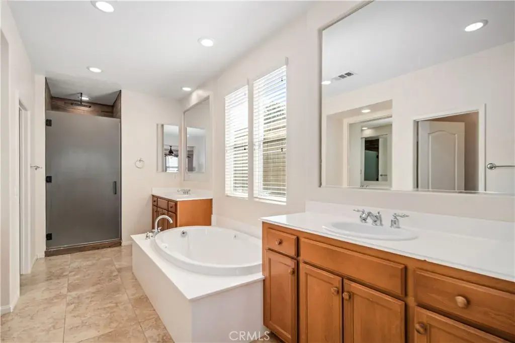 Welcome to this beautifully upgraded and modern home in the heart of Quartz Hill, located in the desirable Westside Union School District near Quartz Hill High. This thoughtfully designed property offers comfort, style, and flexibility, making it perfect for large households, multi-generational living, or even rental potential. A key feature is that the home offers two bedrooms on the main floor—the spacious primary suite plus a secondary bedroom with an adjacent full bath—providing convenience and versatility for in-laws, extended family, or guests. The primary suite is a private retreat with direct backyard access, a spa-style bathroom featuring a sunken tub, separate upgraded rock-bottom shower, dual sinks, and an oversized walk-in closet. The secondary downstairs bedroom with its own nearby full bath creates the option of a private suite, ideal for single-level living. The main living area is bright and airy with vaulted ceilings, abundant windows, upgraded blinds, and modern flooring throughout. A versatile formal dining room can double as a second living area, game room, or home theater, while a welcoming front family room adds even more space. The gourmet kitchen boasts granite counters, upgraded cabinetry, stainless steel appliances, an oversized island, and recessed LED lighting, opening seamlessly to the living room with a cozy fireplace—perfect for family gatherings and entertaining. Upstairs, two oversized bedrooms each have walk-in closets and are connected by a Jack-and-Jill bathroom with double sinks. The backyard is private with no rear neighbors and includes a covered patio with lighting that spans the length of the home. A two-car garage plus a third bay offers room for a workshop, storage, gym, or ADU potential. With solar included, utility costs stay low. Move-in ready, this home comes with mounted TVs, refrigerator, washer, and dryer. THIS IS A SHORT SALE