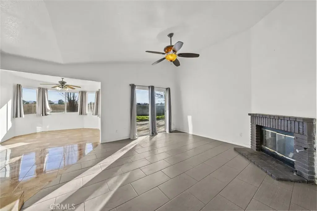 Inside a bright and inviting living room featuring a cozy fireplace, ideal for relaxing evenings. The home offers a dedicated dining area, perfect for gatherings and everyday meals. Ceiling fans throughout provide added comfort, while the included appliances make this home truly move-in ready.