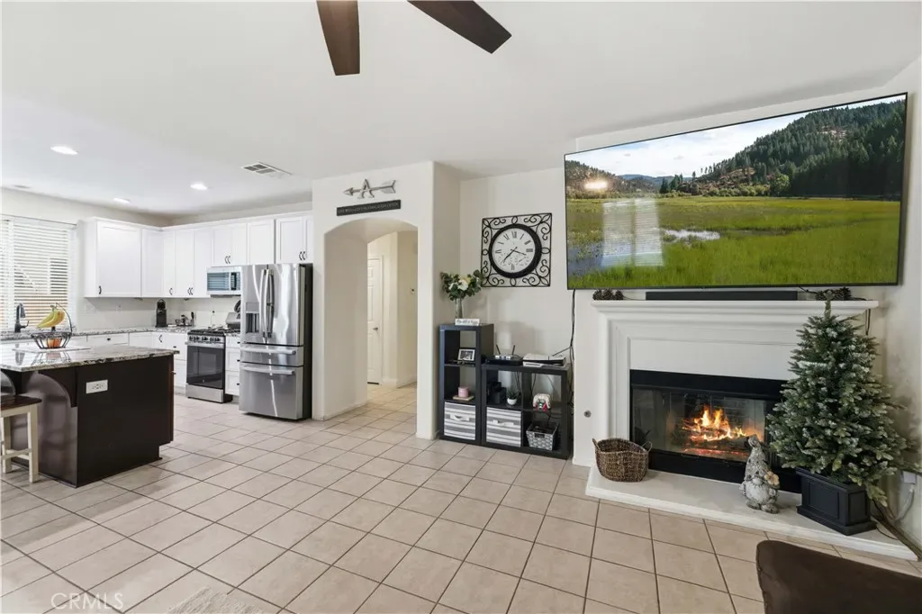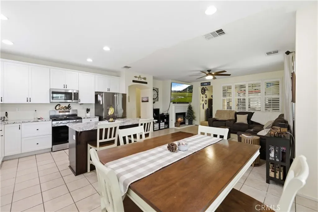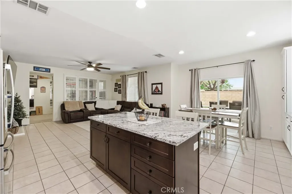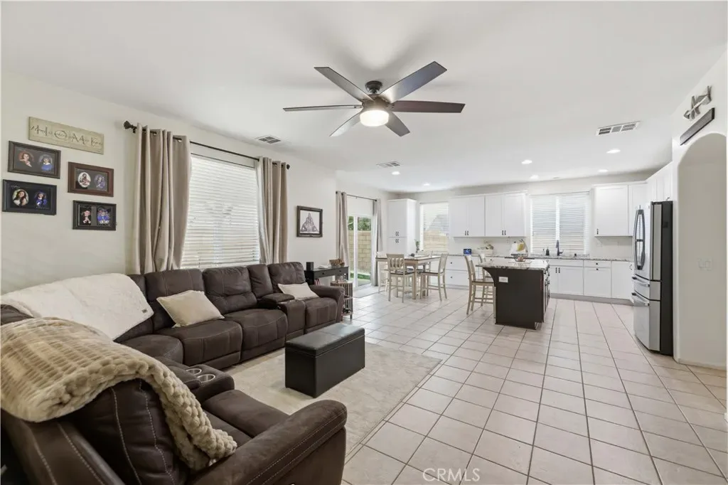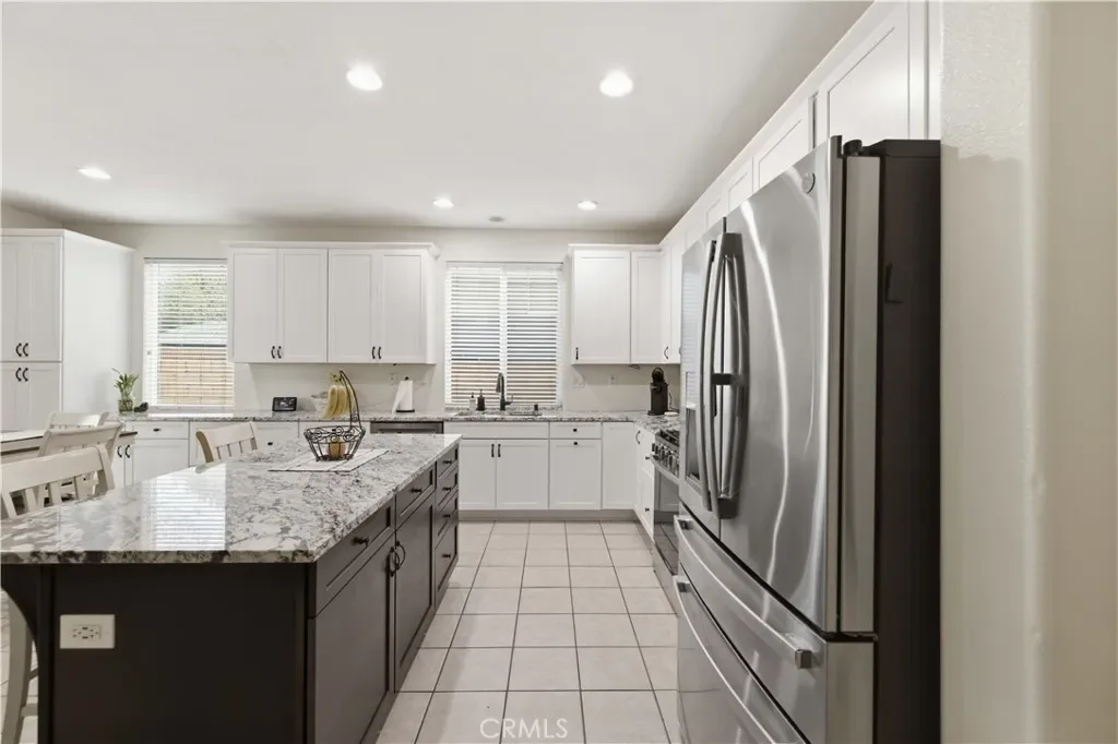 Welcome home to this spacious 2,815 sq. ft. residence offering 4 bedrooms and 3 bathrooms. A beautiful custom front door with a stained-glass window welcomes you into the tiled entryway, where a generously sized, carpeted front living room provides the perfect setting for family gatherings or quiet evenings in. A guest bathroom is conveniently located downstairs for added comfort and accessibility. The heart of the home is the remodeled kitchen, thoughtfully updated with granite countertops, crisp white cabinetry, a center island, black faucet, and modern black hardware. Extended countertop space and added pantry storage enhance both style and function. The kitchen features tile flooring, which continues seamlessly into the dining area and the open family room. The family room offers a warm and inviting atmosphere with its cozy fireplace. Just off this space is a separate bonus room, currently used as a gym, but easily converted into a 5th bedroom, office, or playroom depending on your needs. Upstairs, the oversized primary bedroom provides a true retreat. It features two walk-in closets that lead into the spacious primary bathroom complete with a soaking tub and glass-enclosed shower. Three additional upstairs bedrooms offer generous space, including one with its own private alcove or sitting area–perfect for reading, studying, or relaxing. All bedrooms are equipped with ceiling fans, and the laundry room is conveniently located upstairs. The backyard is expansive and professionally landscaped, featuring a covered patio, two grass areas, and attractive concrete curbing–ideal for entertaining, play, or peaceful outdoor living. The 3-car garage includes a pull-through bay that opens to the backyard, where you’ll find concrete parking, RV access, and RV gates along the side of the home. This home is also commuter-friendly, offering quick access to major routes, and is close to schools, shopping, and everyday conveniences.