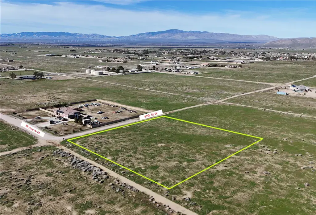 APN: 3260-009-013 Coordinates: 34.807833, -118.250167 2.5 Acre lot for sale in LA county. This lot is located in Lancaster, CA on the corner of E Ave A 14 and 67th ST W. Excellent site for a home build in the future as the parcel is near to other homes.