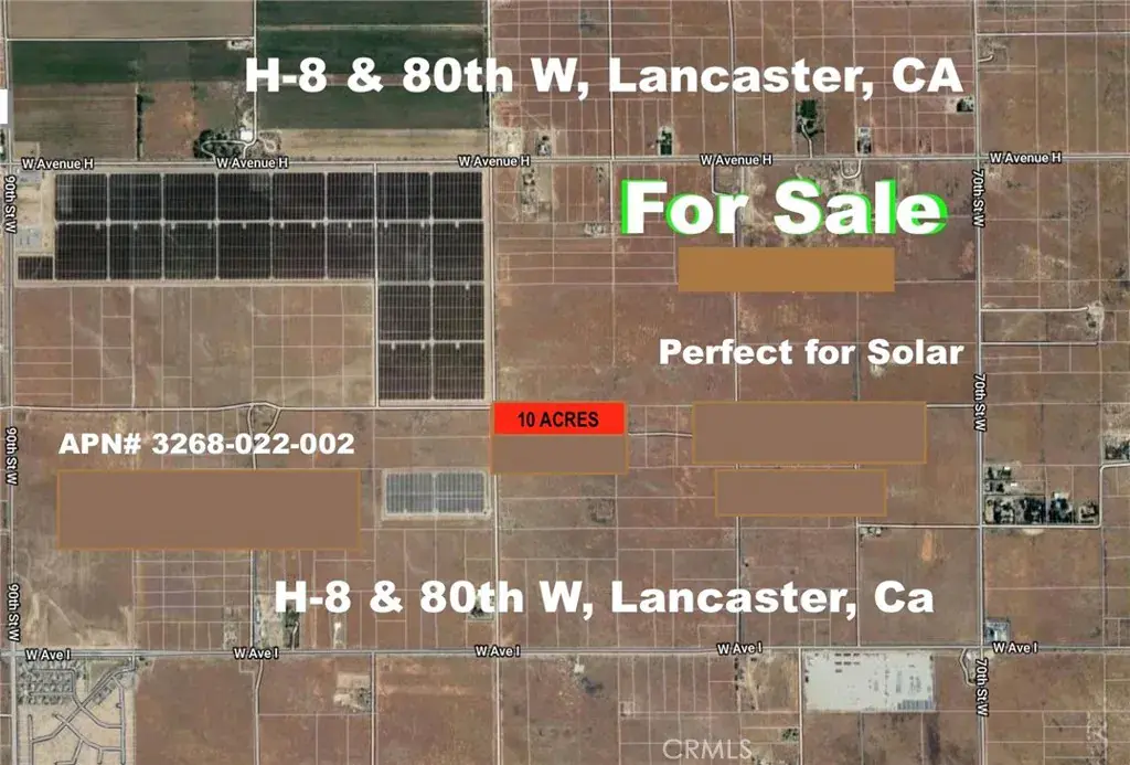 - 80 Avenue H Lancaster CA is a Land for sale in Lancaster, CA, 93536. It is listed for $58,800 and features 10 acres. To schedule a showing of MLS#oc25060619 at 80 Avenue H in Lancaster, CA, contact your James Outland agent at 8057482262.