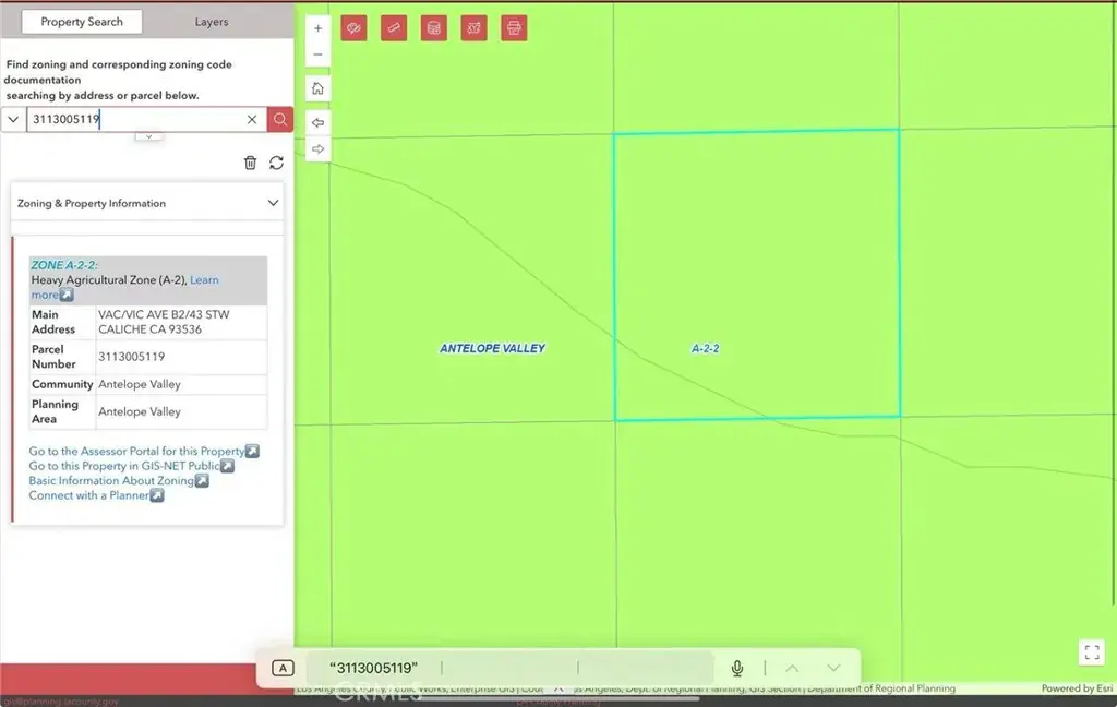 Parcel Number 3113-005-119 is located in the Antelope Valley community of Los Angeles County.