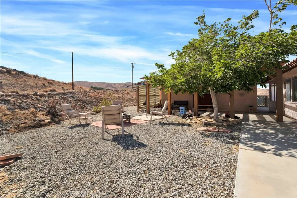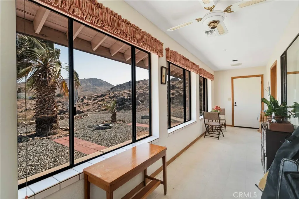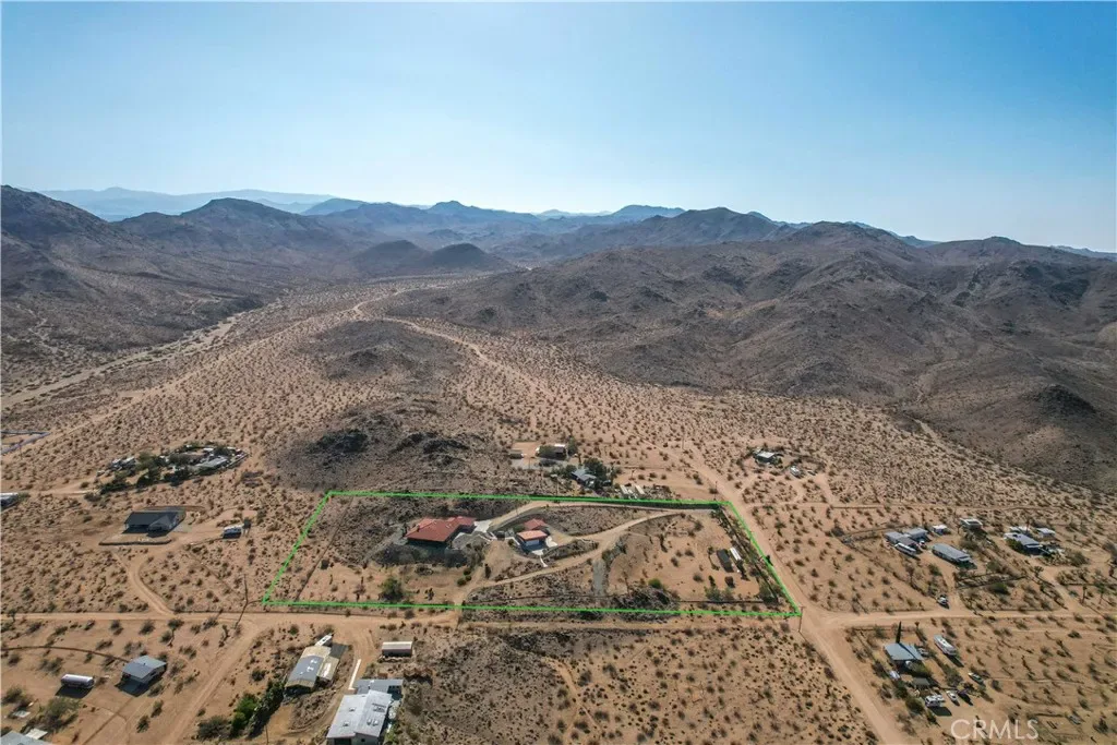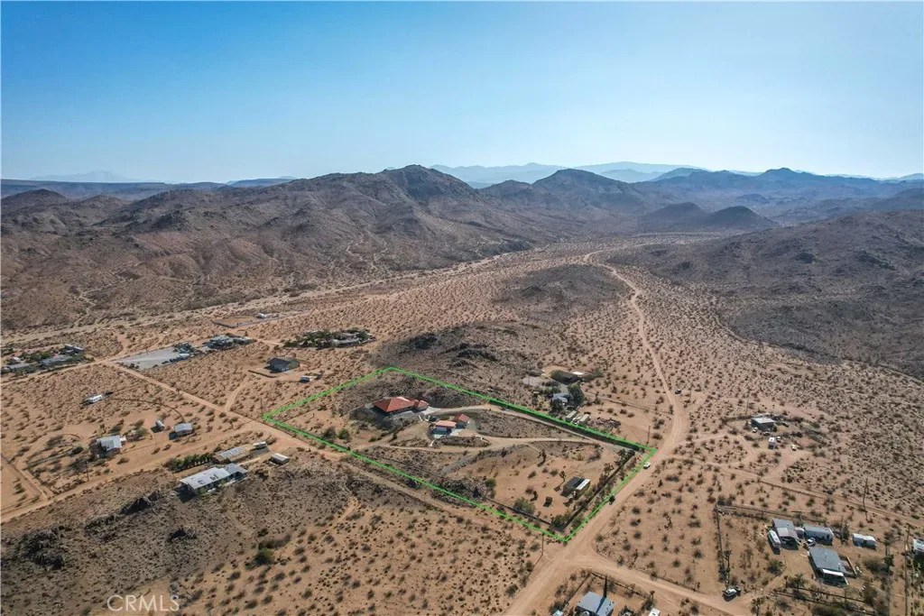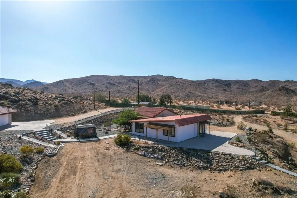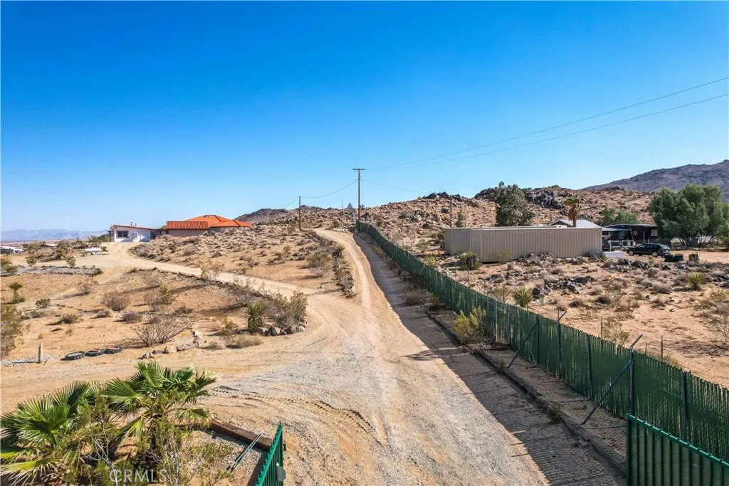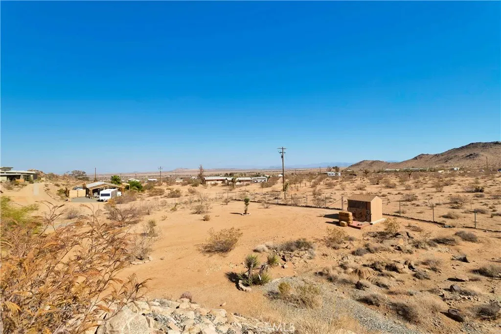 You will be amazed at the stunning views when you arrive. This one-of-a-kind property has two homes nestled against natural rocks. Main home has 2 bedrooms, 2 bathrooms, and a large great room with wood-beamed vaulted ceiling. Extraordinary views from windows on 3 sides. Kitchen has Corian counters with tons of cabinets. L-shape kitchen island has bar seating. Two large bedrooms with 3 walk-in closets. Huge soaking tub in the master bath. There is a south-facing sunroom which is perfect for soaking up the winter sun. The indoor laundry room has plenty of cabinets for all your storage needs. 2 car attached garage. The front patio runs the length of the home and provides endless eastern views. This home is perfect for hosting large parties or gatherings. The 2nd home has 1 bedroom, 1 bath with an enclosed porch. It also has it’s own detached 2 car garage. The views from this 2nd home are incredible as well. The entire property of 5 acres is fully fenced with two gated entrances. Property is dotted with Joshua Trees, Palm Trees, Palo Verde trees, and Mojave Yuccas. Natural desert wildlife can often be seen, such as Quail, Rabbits, Coyotes and more. Landers is home to the Integraton, La Copine restaurant and world-famous Gublers Orchids. Popular riding trails nearby. Joshua Tree National Park is a mere 25 minutes away. Big Bear is 1 hour drive. This amazing property is perfect for vacation rental, wedding venue or other creative ideas. Live in one and rent the other. Many possibilities. Make your appointment to view today. Buyer to verify details and zoning etc.