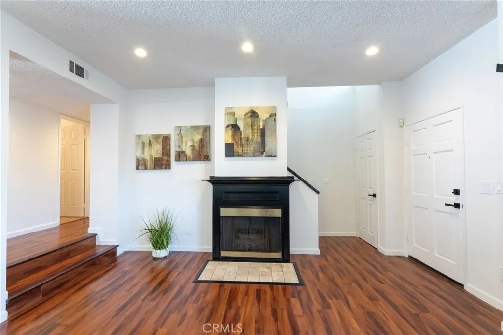WELCOME HOME to this rare end-unit opportunity in the gated La Palma Estates community. This 3-story townhome offers 2 bedrooms, 2.5 baths, and 1,298 sq. ft., with direct street access and a well-balanced, functional layout. Fresh interior paint and thoughtful upgrades bring a crisp, modern energy throughout. The living room features a fireplace and opens to a front patio through a sliding glass door, creating an easy indoor-outdoor connection. Just a couple steps up, the dining area flows into an updated kitchen with granite countertops, stainless steel appliances, a wine fridge, and ample cabinetry. A convenient half bath completes the main level. Upstairs, both bedrooms are ensuite with vaulted ceilings and generous closet space, offering comfort and privacy. The lower level provides direct access to the oversized 2-car garage along with a spacious laundry room. Additional features include central air and heat, recessed lighting, updated bathrooms, new fixtures and hardware. Residents of La Palma Estates enjoy access to a pool, spa, clubhouse, and recreation area. Just minutes from shopping and dining, with easy access to the 405, 105, and 110 freeways, this turnkey property is move-in ready. Submit ALL Offers!