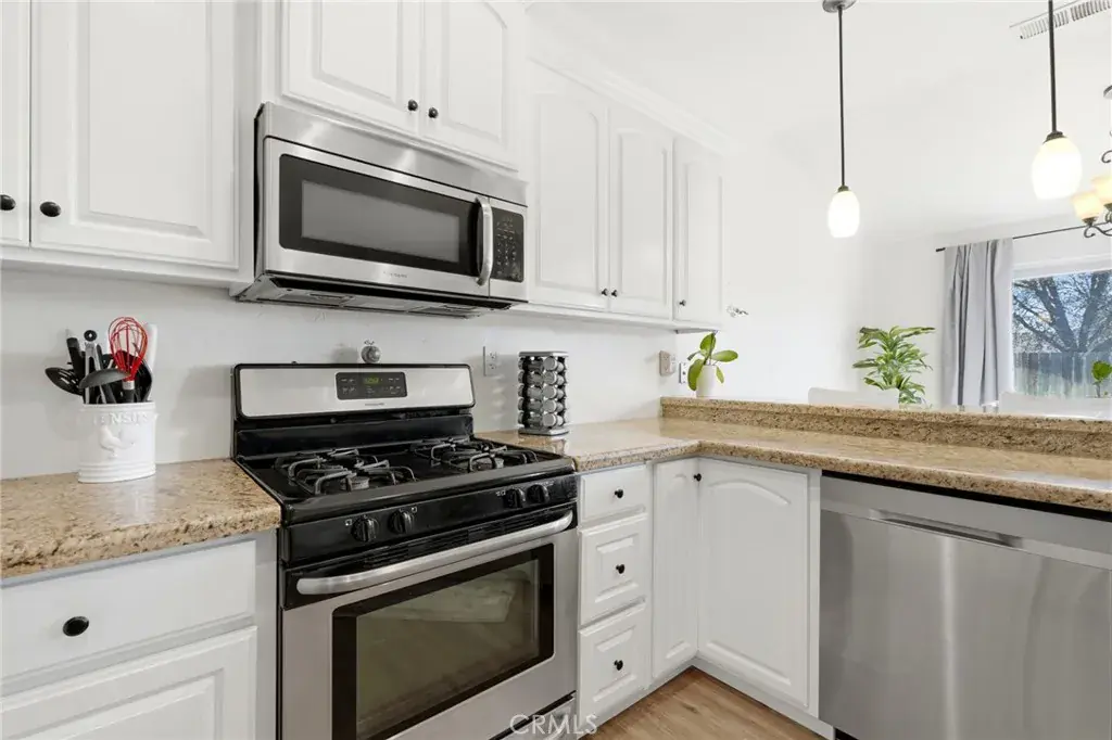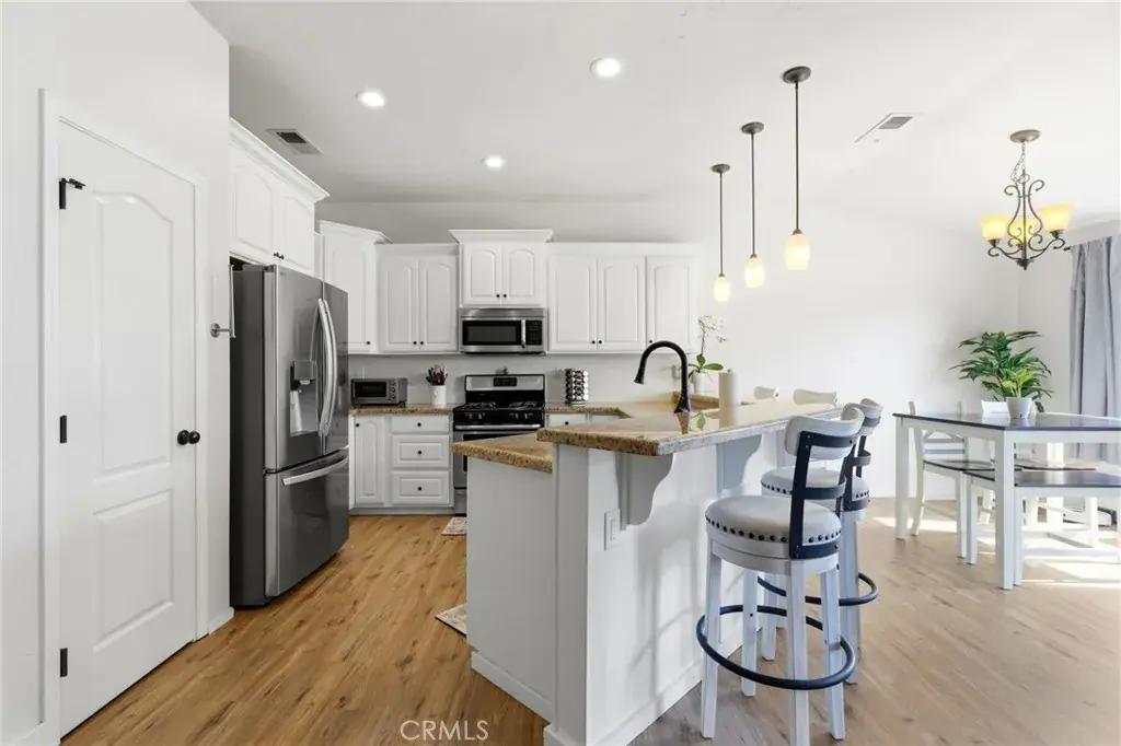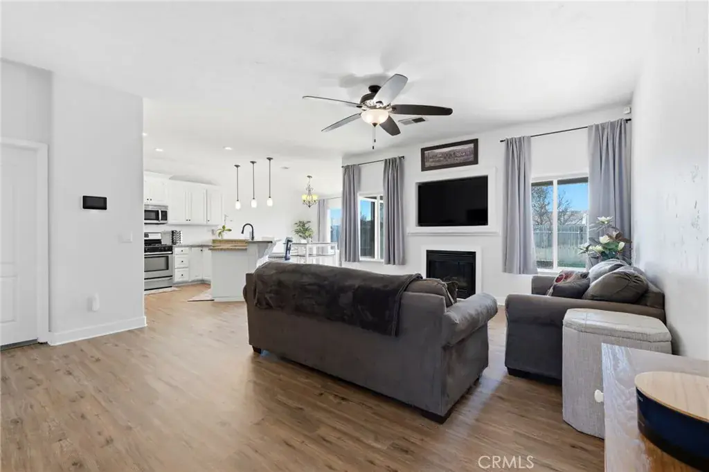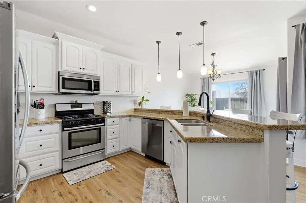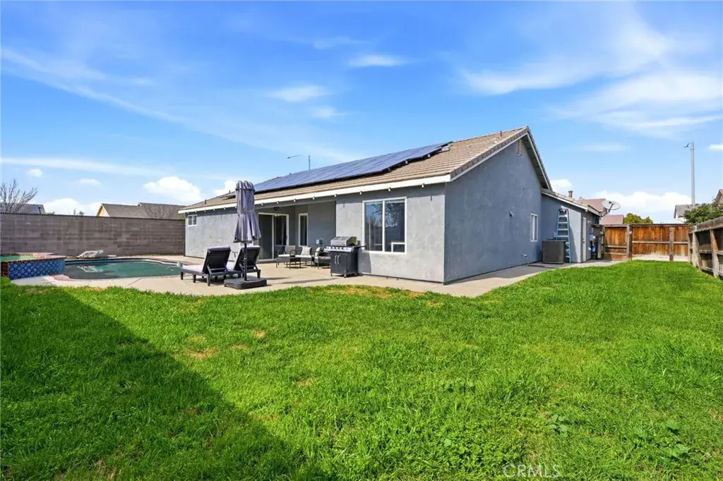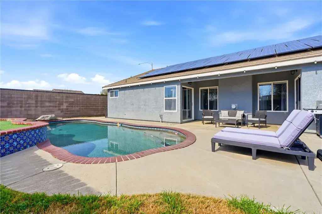 Positioned on a prime corner lot, with seller incentives available, this rare 5-bedroom, 2 bath home offers space, privacy, and standout curb appeal in NW Lemoore. Inside, you’ll find new laminate flooring throughout and a light, open-concept layout with vaulted ceilings. The spacious kitchen features granite counters, ample cabinetry, and a breakfast bar that opens seamlessly to the living area, complete with fireplace and backyard views. The primary suite offers direct patio access and a beautifully updated en-suite bath with dual vanities, soaking tub, and walk-in shower. Step outside to your private backyard retreat with a sparkling pool, perfect for summer gatherings and relaxing evenings. Solar has covered the sellers’ usage even with the pool and a Tesla charger in the garage, offering meaningful energy savings. Additional highlights include a 3-car garage, whole-house water filtration system, security system, upgraded pool equipment, and smart sprinkler controls. Conveniently located near schools, parks, Lemoore NAS, and quick access to Hwy 198 & 41, this is the space, functionality, and efficiency buyers have been waiting for. Schedule your showing today!