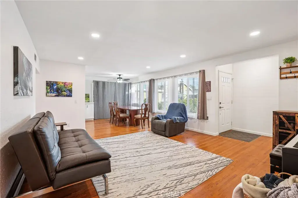 This is the home you’ve been waiting for! Beautifully remodeled 4-bedroom, 2-bath home with over 1,600 sq ft of living space on a 5,000+ sq ft lot. The home has been updated with a remodeled kitchen featuring newer appliances, newly remodeled bathrooms, newer dual-pane windows throughout, a new 200-amp electrical panel, and a newly built laundry room. Natural light fills the interior, highlighting original hardwood floors. The primary suite includes custom dual closets and a double-head shower. The gated front yard and driveway create incredible usable space, while the newly screened-in backyard deck is perfect for BBQs and enjoying beautiful Southern California weather. Bonus features include generous storage in the garage and two backyard chicken coops for those dreaming of a little homestead charm.