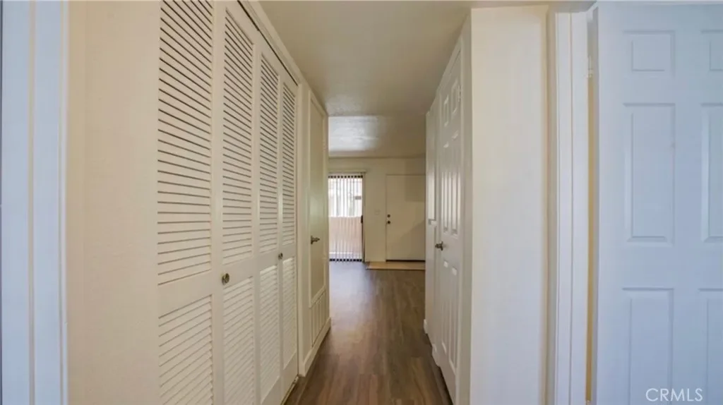 Down the hallway, you’ll find additional storage and a dedicated laundry closet with a side-by-side washer and dryer plus shelving. The home also includes a newer furnace and wood laminate flooring throughout the main living areas.