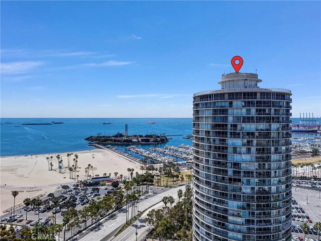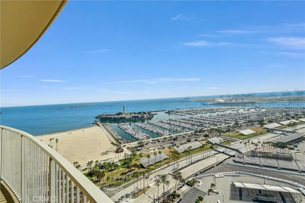 Spectacular 31st-floor ocean-view residence at the iconic International Tower Long Beach, two assigned subterranean parking spaces, breathtaking panoramic views from every room, and a large curved wrap-around balcony. Enjoy sweeping vistas of the Pacific Ocean, beach, marina, Catalina Island, the historic RMS Queen Mary, sparkling city lights, and unforgettable sunsets. This home also provides one of the best private vantage points in the city for the world-famous Long Beach Grand Prix.