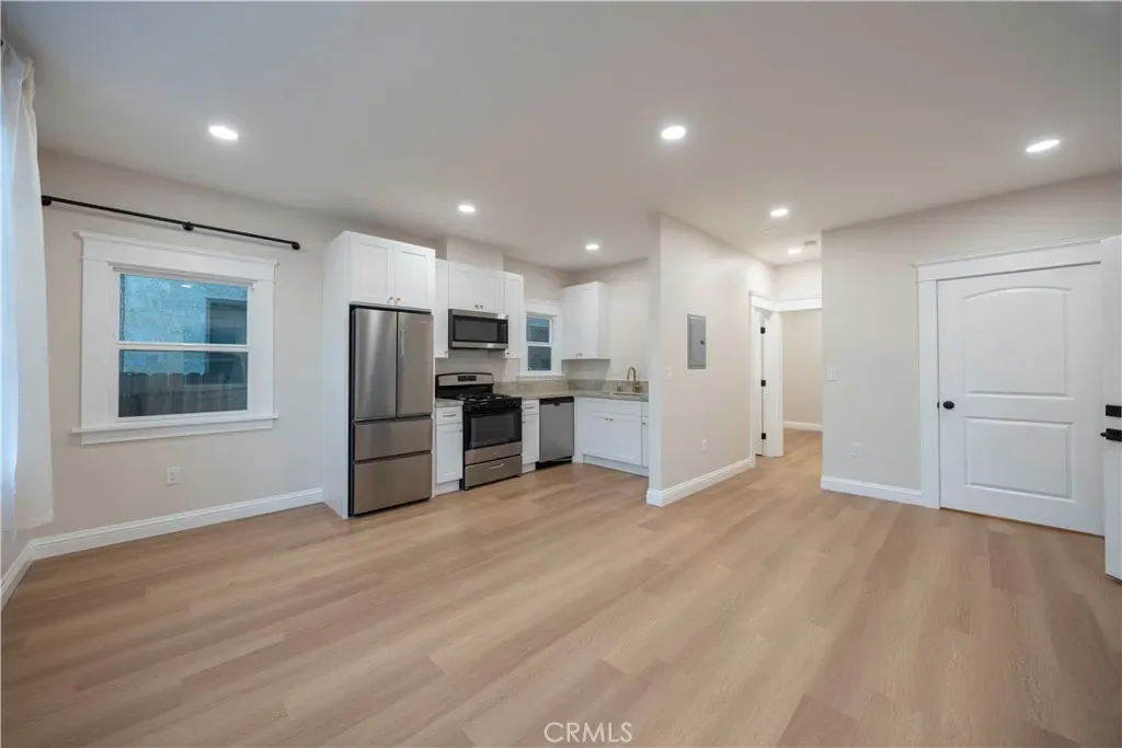 All units feature high-end interior renovations, including modern kitchens with European-style cabinetry, quartz countertops, Energy Star stainless steel appliances, designer lighting, and contemporary fixtures. Bathrooms have been fully upgraded with modern enclosures, plank flooring, and code-compliant mechanical improvements. Each unit includes in-unit washer/dryer, plank vinyl flooring, new doors and windows, ceiling fans, and fresh paint—creating a cohesive, upscale aesthetic throughout the property.