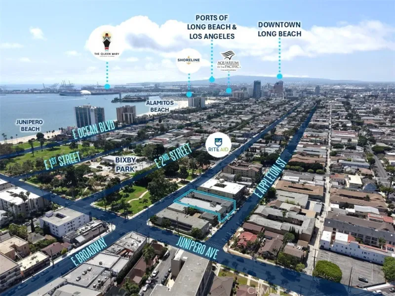 The properties boast a Walk Score of 92 (“Walker’s Paradise”), placing residents within steps of trendy restaurants, boutique shopping, coffee houses, and entertainment venues. Nearby attractions include the Long Beach Museum of Art, Shoreline Village, Alamitos Beach, and the Broadway Corridor’s nightlife and dining scene. Tenants also enjoy convenient access to major employment hubs, Downtown Long Beach, and freeway connectivity to greater Los Angeles and Orange County.