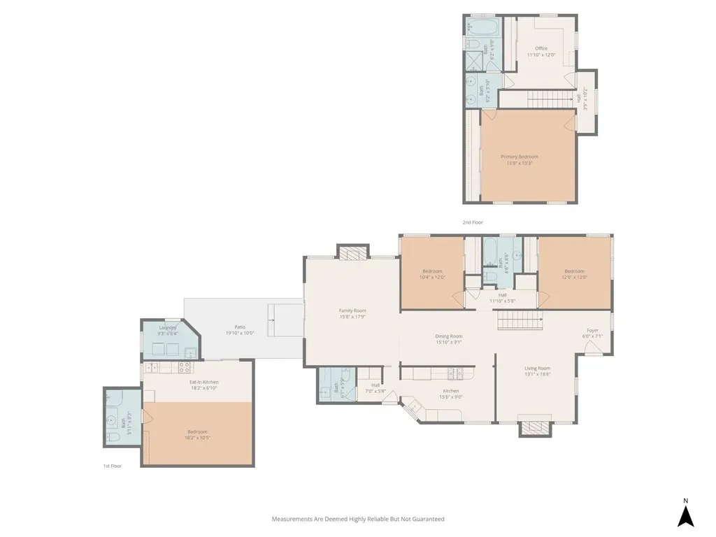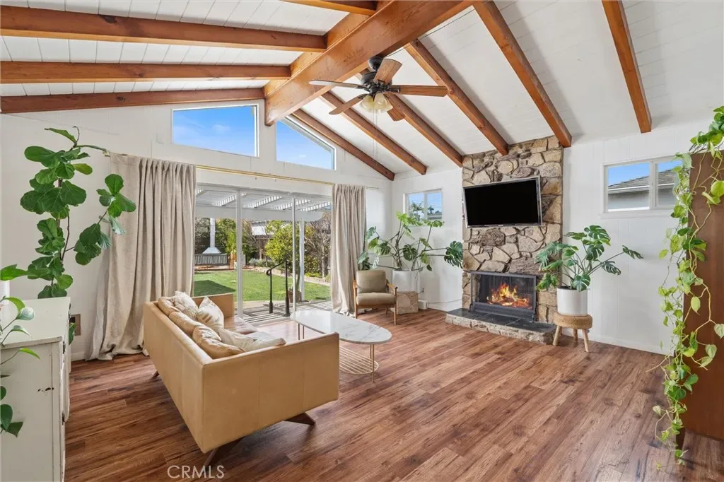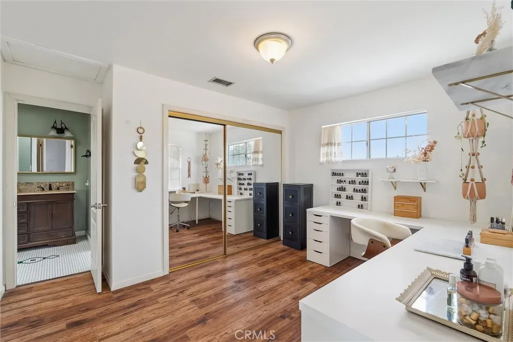 This versatile property includes a detached garage converted bonus room with kitchenette and private bath perfect for extended living, a private home office, guest suite, or the ultimate kids’ hangout zone. The main home features hardwood floors, an updated kitchen, spacious living and family rooms, a cozy fireplace and a large primary suite. Upstairs primary suite bathroom is a jack and jill bathroom that connects to both the primary bedroom and upstairs bedroom #4. A separate laundry room is located adjacent to the detached bonus room.