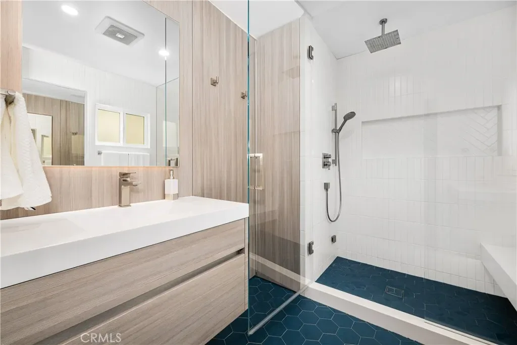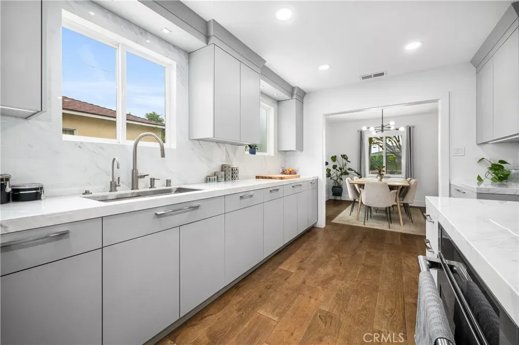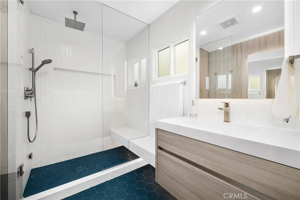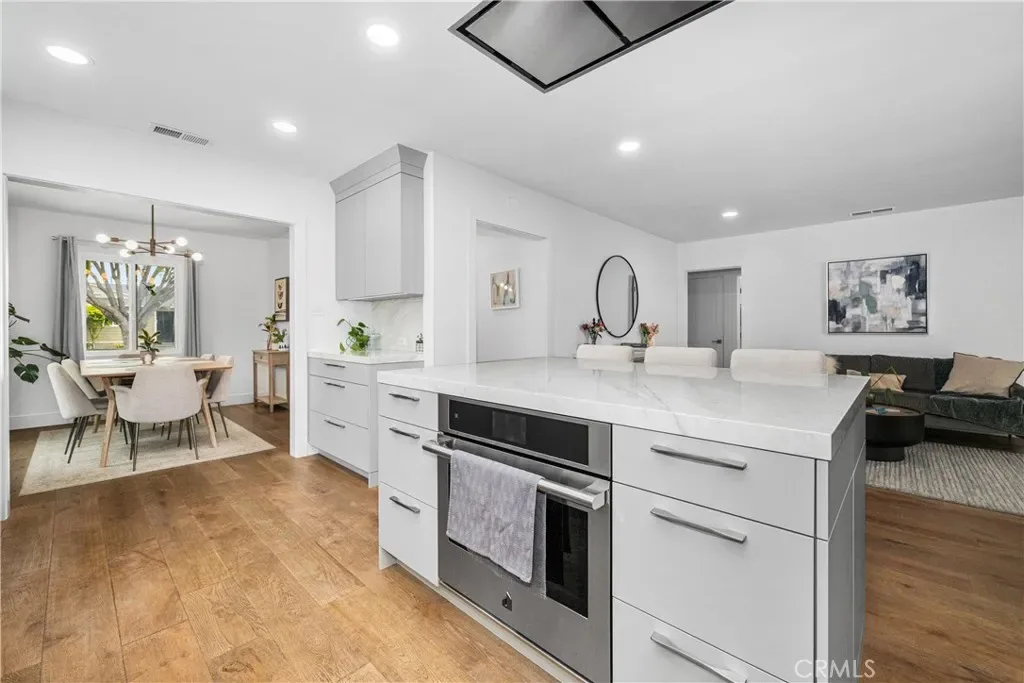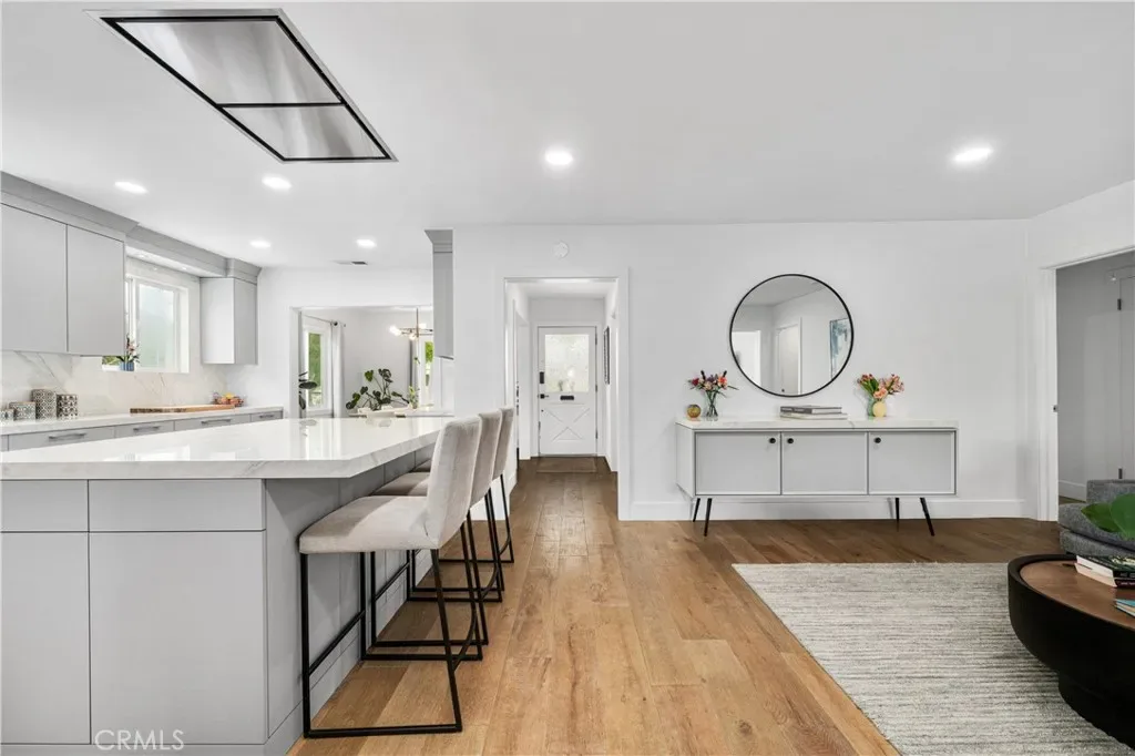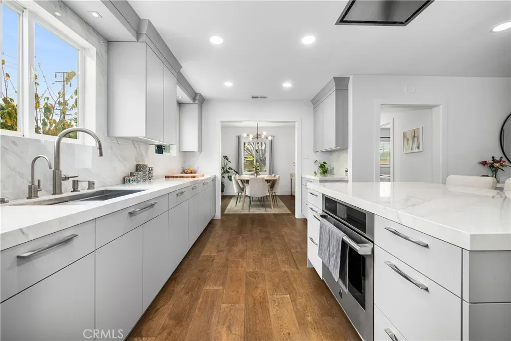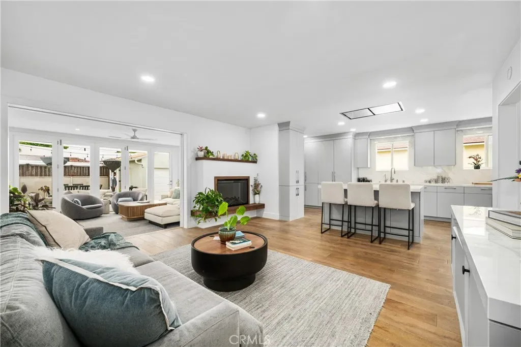 Don’t miss this once in a lifetime opportunity to own one of the most thoughtful remodels you will see in the 90808. Upon entry, you will be greeted with the airy and sprawling kitchen with open views throughout the living spaces. This chef’s kitchen offers European style cabinetry, overhead flush mount hood, 42 inch integrated Dacor refrigerator and top of the line German stainless steel self closing drawer boxes. The induction cooktop is built into the porcelain counter in the center island! This is truly a must see feature! Some of the cabinets doors are motorized, and all are self closing. This amazing kitchen segways to the open living room and added family room. The rich, engineered wood flooring provide a wonderful base for the floating cabinetry and folding patio doors leading to the backyard. These doors were custom built with the finest in German precision hardware, which ensures an effortless, smooth open and close. The en-suite primary bedroom has a very spacious bathroom and closet system. The bathroom boasts symmetric pocket door entry, steam shower with with touch screen operation, dual floating vanities, hidden commode, lit museum glass mirrors, and top end Hansgrohe plumbing fixtures. The guest bedrooms are both spacious with an en-suite half bath included in the front room. Additional features include a 186 square foot laundry room with generous storage and drip dry area with dedicated drain. The razor sharp backyard is a seamless extension of the living space, complete with a full outdoor kitchen with island. The out door kitchen has motorized cabinet doors, and it’s own dishwasher. Finally, there is a sharp ADU with a loft which can be a sleeping area. Although it is currently set up as an office, it can function in multiple capacities. The 3/4 bath is brand new. The double door entry, when opened, provides a open and cheery space. The garage also offers a work bench area and a finished space with recessed lighting that makes for a wonderful gym or flex space. Copper plumbing, Milgard windows, central heat and AC, tankless water heater and more. The designer appointments throughout this home are far too many to list! The long driveway allows for the parking of multiple cars or an RV. This one of a kind home has a great view of Heartwell Park, and is a very short walk to desired Patrick Henry Elementary. Hurry, this is sure not to last.