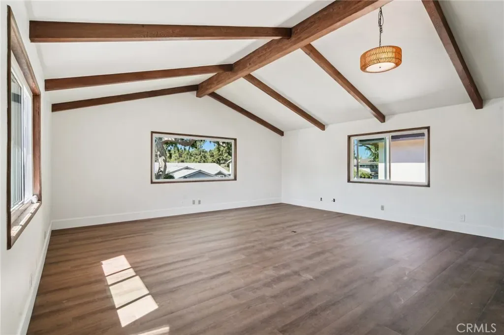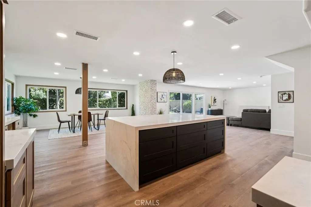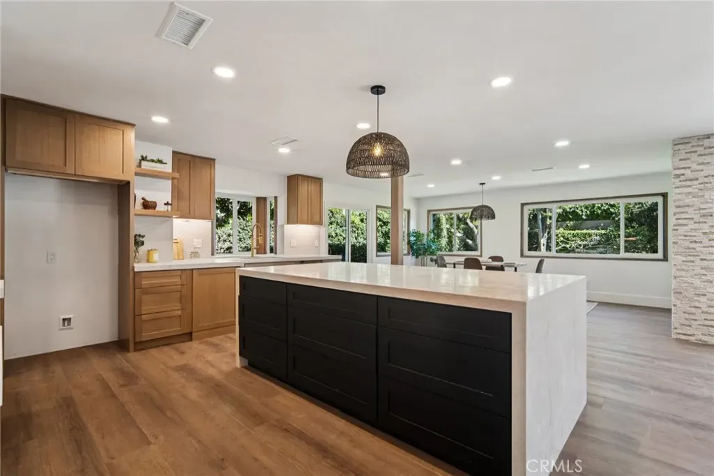Absolutely stunning home in the prestigious neighborhood of El Dorado Park Estates in Long Beach, CA! This is a one-of-a-kind property, perfectly geographically positioned, right on the border of Orange County. This home must be experienced to be fully appreciated – every part of this home was renovated to absolute perfection! The curb appeal radiates the American Dream, with beautiful stackstone complimenting the exterior custom paint & trim creating instant joy upon arrival. Before stepping in through the custom White Oak front door, custom wood work and be seen encasing the double-pane vinyl windows throughout – creating the ideal setting for indoor/outdoor living in a wonderful and safe neighborhood to live and enjoy family. Once opening the front door, the height of the ceiling is immediately noticed as heightened to 8 feet, complete with interior walls fitted with 8-inch baseboards. The flooring is absolutely gorgeous and look flawless – brand new luxury vinyl tile installed throughout, both beautiful & practical for daily living in a beach city. The kitchen has been completely reimagined and opened up, with high-end custom white oak cabinets, new hardware, new lighting fixtures, custom accent lighting, Solitaj Q Quartz 2 1/4 inch bull-nose countertops, and complete with a custom built waterfall kitchen island with 55″ x 101″ dimensions. The kitchen provides a walk-in chef’s pantry – a rare find for the area! The Living Room fireplace is fitted with beautiful Marvel Italian Tile, and the window interiors are fitted with custom oak casings. The full bath on the first level is remodeled to the highest standards – complete with a stunning urban slat wall. The two car garage enters into the separated laundry room – perfect for pragmatic use & the sound quality of the home. The stairway to the 2nd level has been rebuilt with custom materials & modern railing. The Primary Bedroom upstairs is an enlarged bedroom, complete with an ensuite Primary Bath – situated with the highest quality materials, a free-standing tub, double vanity, enormous walk in closet, and separate shower. The 5th Bedroom bonus room is as gorgeous as it is rare, designed with vaulted ceilings and beams. Other upgrades include: all new PEX Plumbing throughout, all new duct work installed, brand new HVAC system, new sewer line out to the street. This home will not last long!