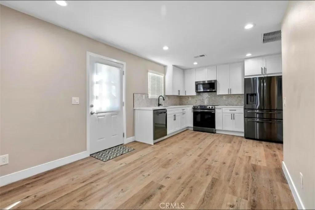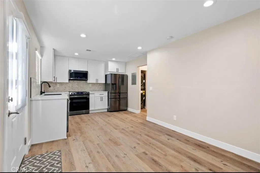 Welcome to this stunning, ADU located in the highly desirable Imperial Estates neighborhood of Long Beach. Thoughtfully designed with quality and comfort in mind, this 1-bedroom, 1-bathroom home offers modern living at its finest. The kitchen is fully equipped with top-of-the-line appliances, including a dishwasher, microwave, electric range, and a refrigerator with ice maker and filtered water. Crisp white cabinetry, a farmhouse sink, and sleek finishes create a clean, elevated space perfect for everyday living. Enjoy year-round comfort with air conditioning and heating, along with high-end vinyl plank flooring throughout. The unit also features a convenient in-unit stacked washer and dryer. The bathroom feels like a spa retreat, showcasing beautiful tile work, modern fixtures, a towel warmer, and an anti-fog mirror, perfect for relaxing after a long day! Additional highlights include light attic storage, a small private patio area at the entry, and plentiful street parking in a quiet, well-maintained neighborhood. This is a rare opportunity to live in a beautiful space. Come see it for yourself!