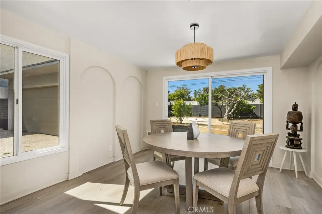 The home also includes a newer roof and a 6 month old solar panels to be paid off by close of escow, and dual-paned windows providing a peace of mind and efficiency. Natural light fills the interior, creating a warm and inviting atmosphere throughout. Situated on a large lot, the property offers a long driveway with a detached two car garage with a privacy front fence and gate. Fruit trees and a relaxing electric firepit perfect for unwinding. This is conveniently located near top-rated schools, beautiful parks, and shopping. The home combines comfort, style and an exceptional location in one of Long Beach’s most sought-after neighborhoods.