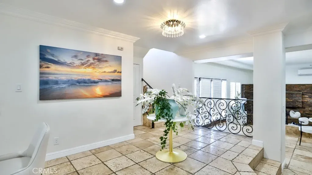 Spanning approximately 2,558 sq. ft., the home features 4 bedrooms and 4 bathrooms, thoughtfully curated with refined finishes throughout. Elegant crown molding, plantation shutters, and a sophisticated blend of stone tile and engineered hardwood flooring create a warm yet luxurious ambiance.